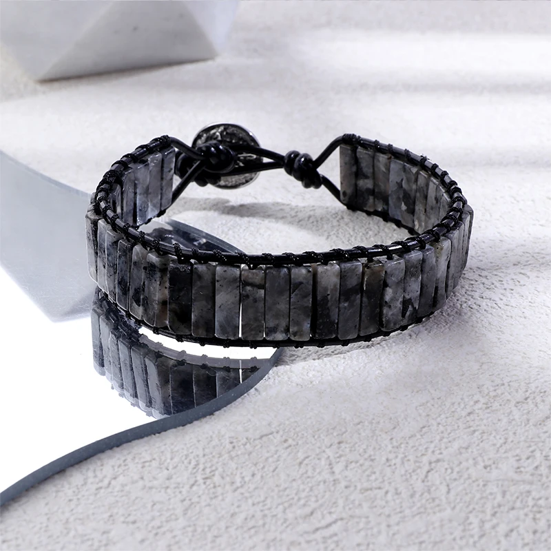 Natural Snow Stone Geometric Classic Boho Handcrafted Adjustable Gemstone Beaded Dainty Men's Fashion Jewelry