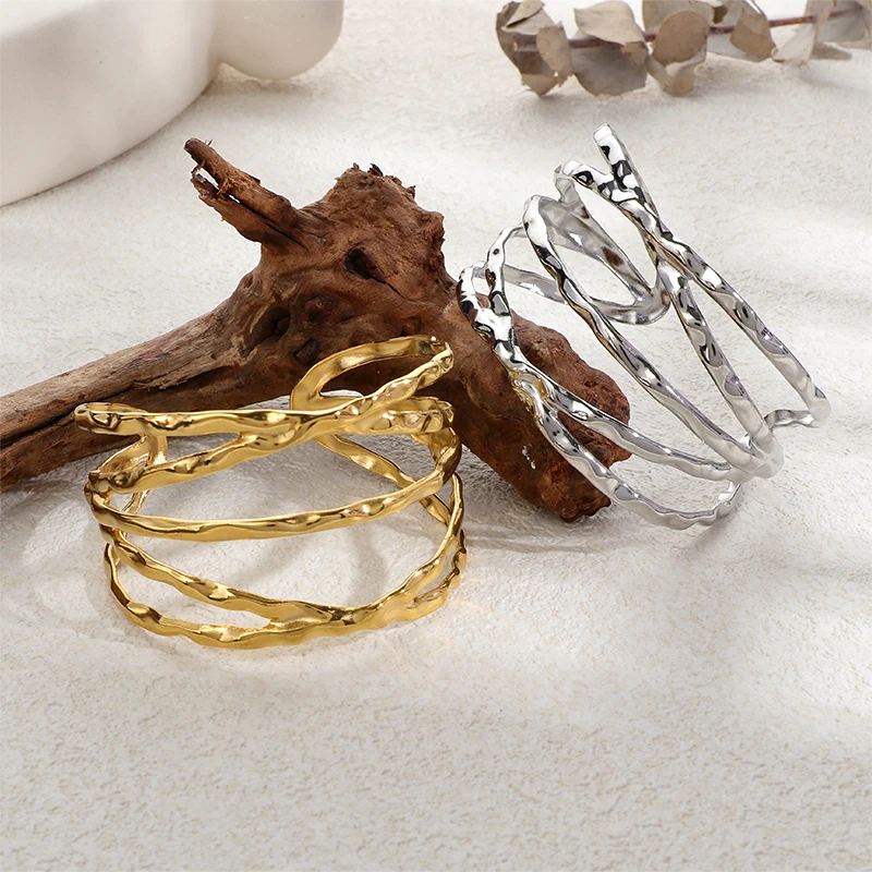 Personalized Exaggerated Bangle Geometric Hollow Multi-layer Bracelet Waterproof Wide Cuff Women's Retro Gold Open Bracelet