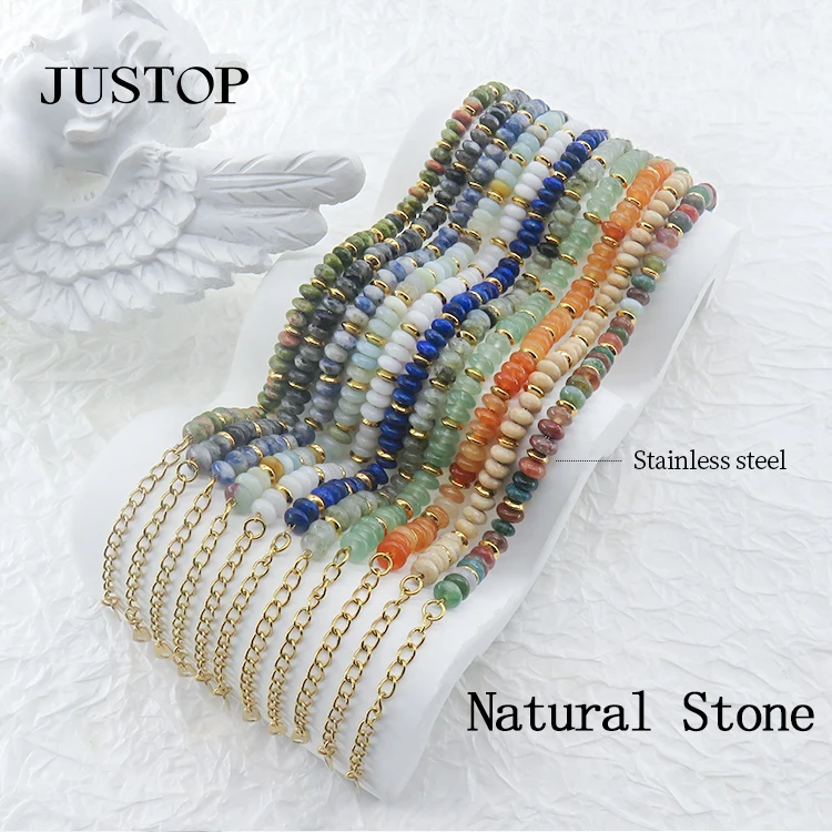 Wholesale Custom Natural Stone Bracelet with Gold Plated Stainless Steel Chain Wedding Gift Jewelry for Women