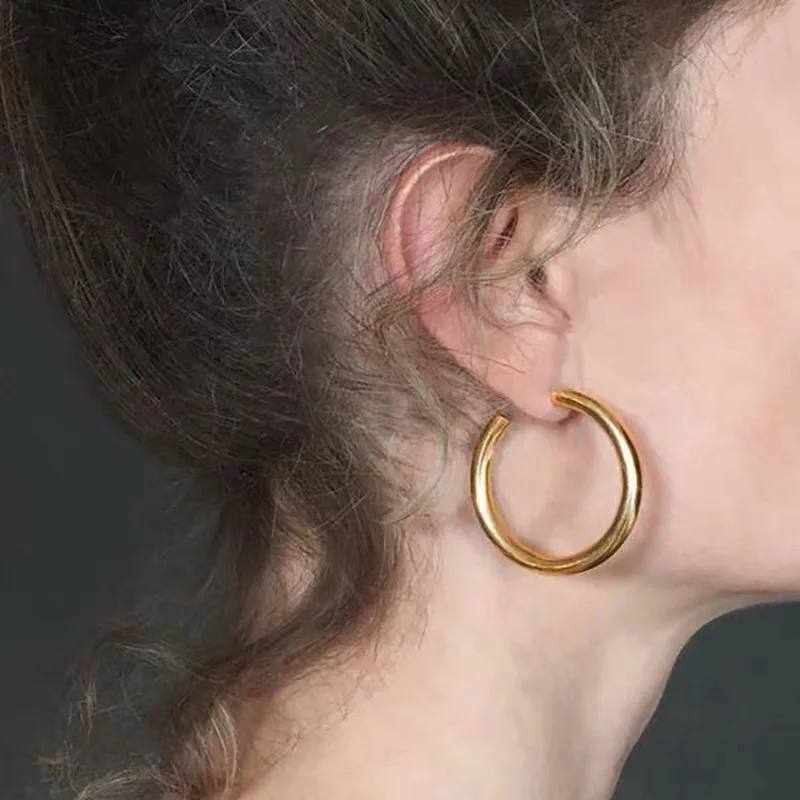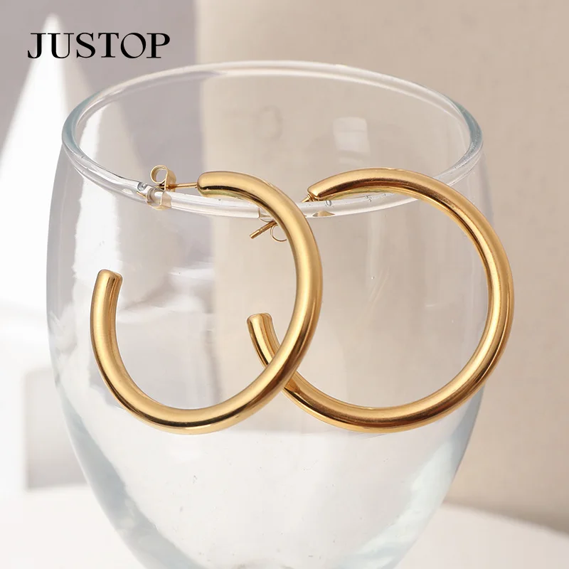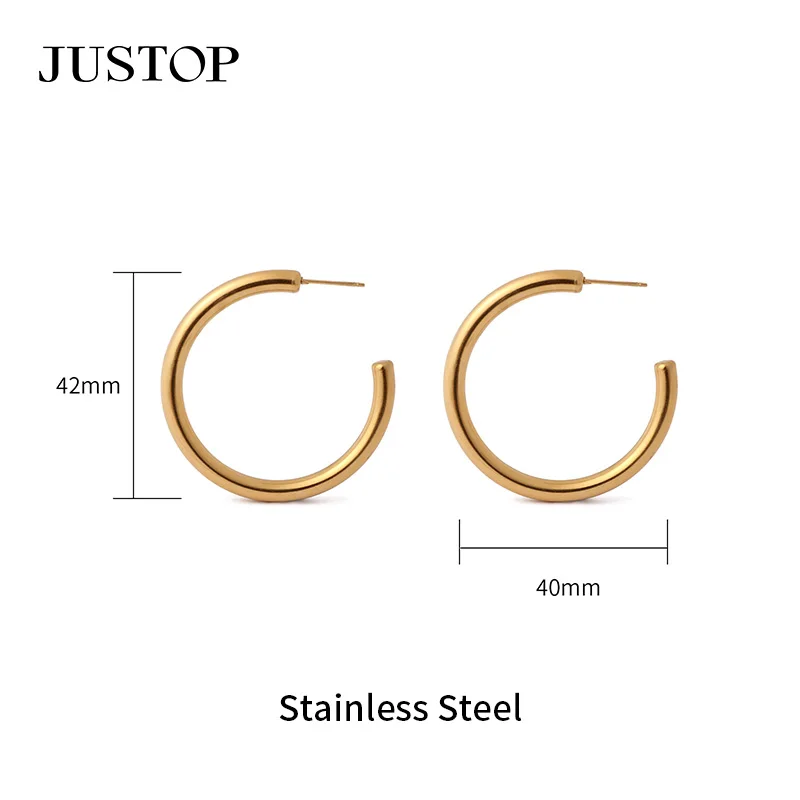 Vintage 18K Gold Plated Stainless Steel Huggie Earrings Classic C Shape Hook Design Water-Resistant Party Jewelry