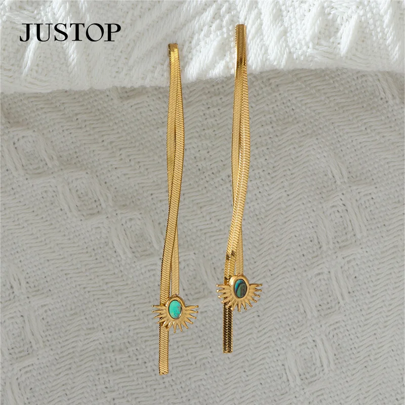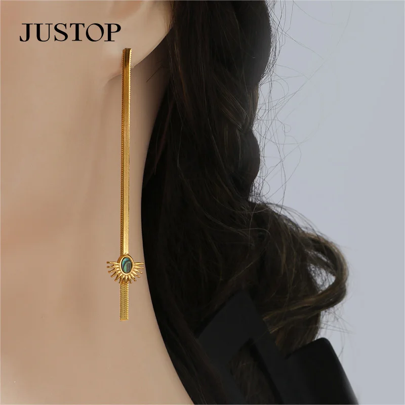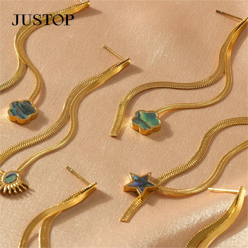 18K Gold Plated Trendy Snake-Bone Chain Tassel Earrings New Fashion Knotted Shell Earrings for Women Made of Stainless Steel