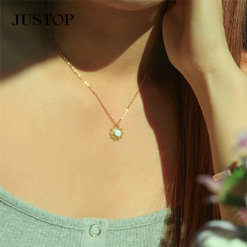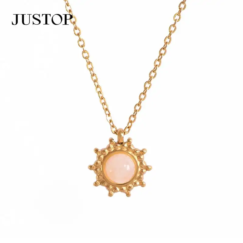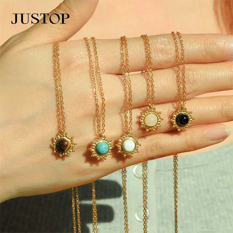 Handmade Minimalist Gold Sunburst Pendant Necklace for Women Custom Fashion Natural Stone Statement Chain Stainless Steel