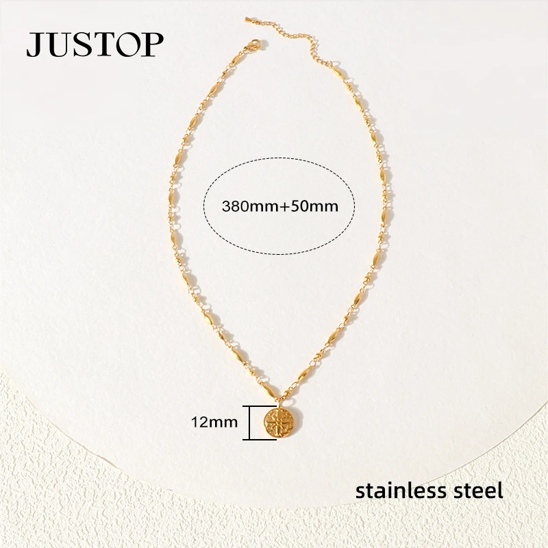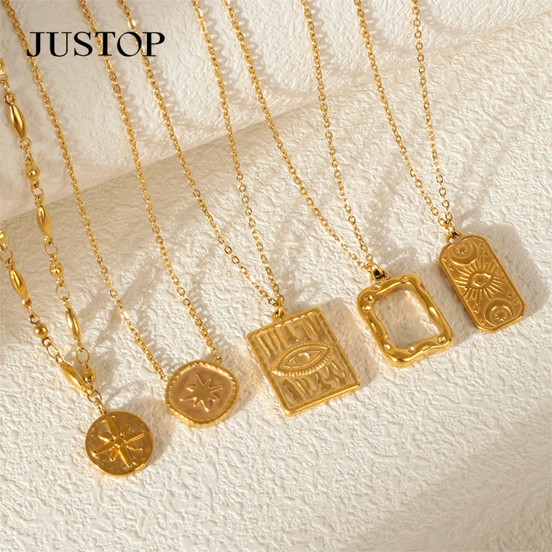 Unisex Statement Jewelry-Coin-Shape Eye Star Pendant on Chain Link Necklace New Design Trendy 18K Gold PVD Stainless Steel