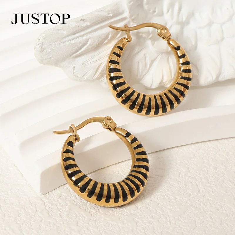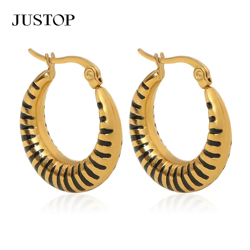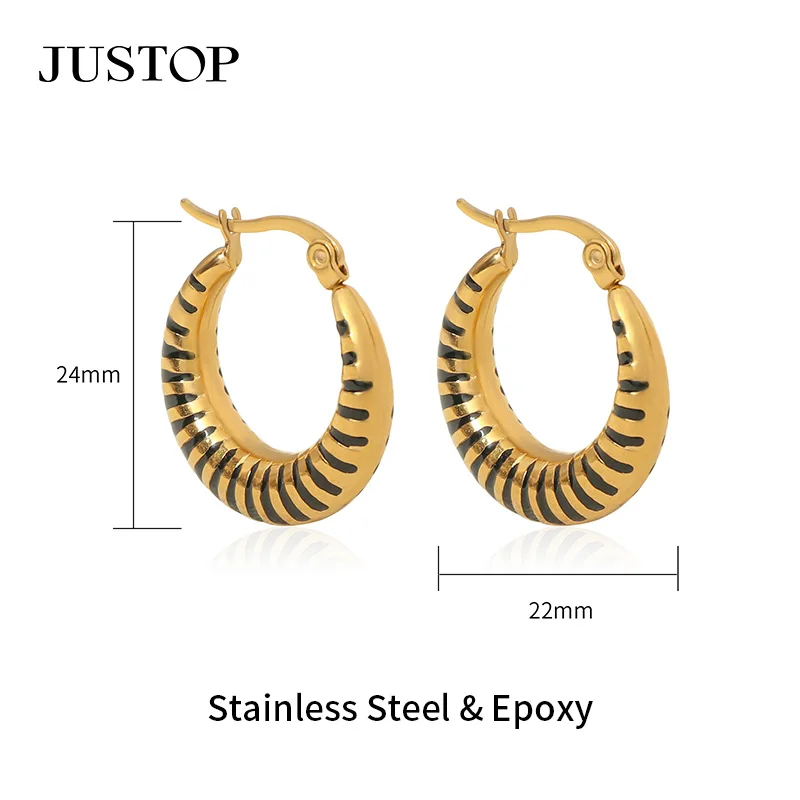 Designer 18K Gold Plated Vintage Epoxy Stainless Steel Statement Earrings C Shaped Hoop with Hook for Women for Party