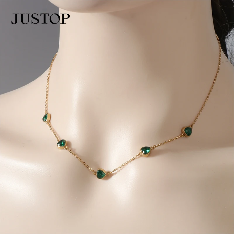 Titanium Steel PVD Plating Trendy Cubic Zircon Heart Pendant Choker Short Necklace Women's Love Gift Made of Stainless Steel