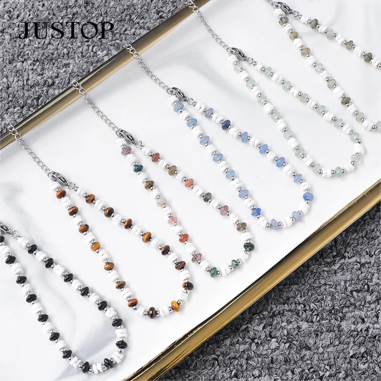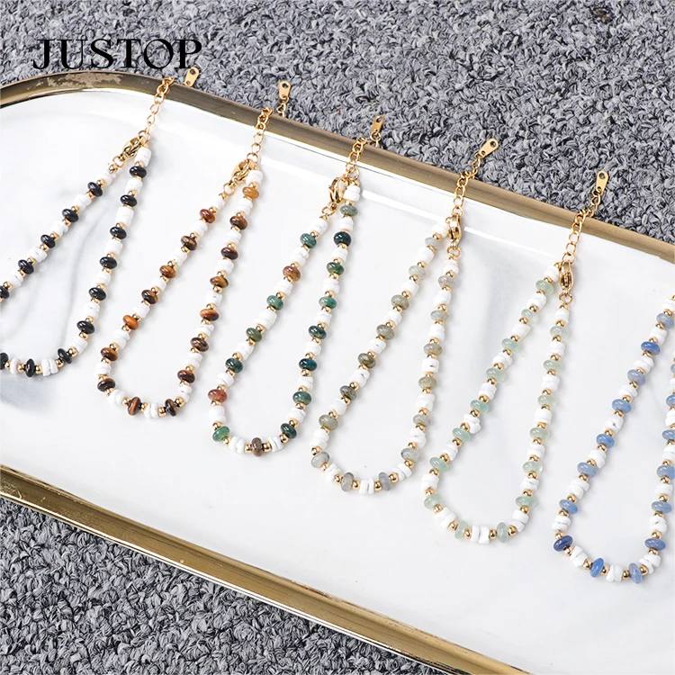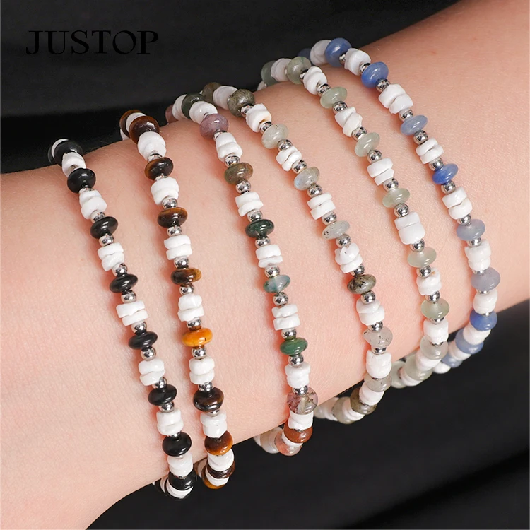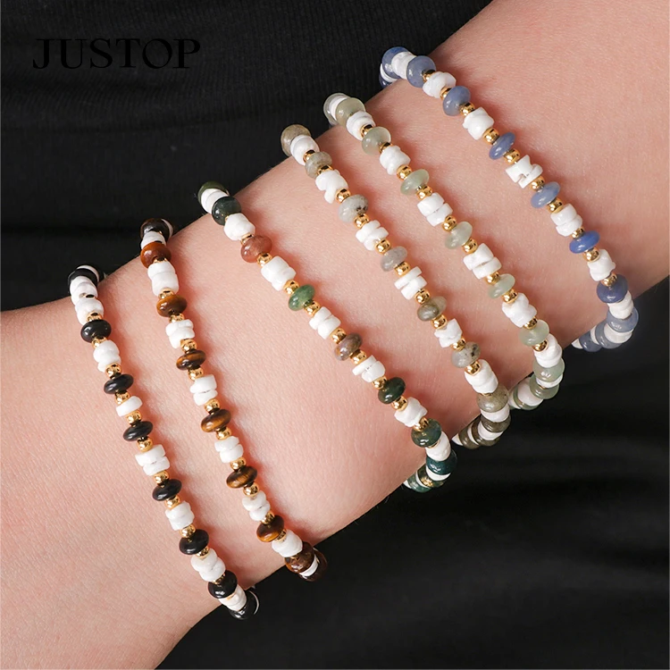 Vintage 18K Gold Plated Stainless Steel Bangle Simple Fashion Natural Stone Geometric Bracelet Chic Jewelry