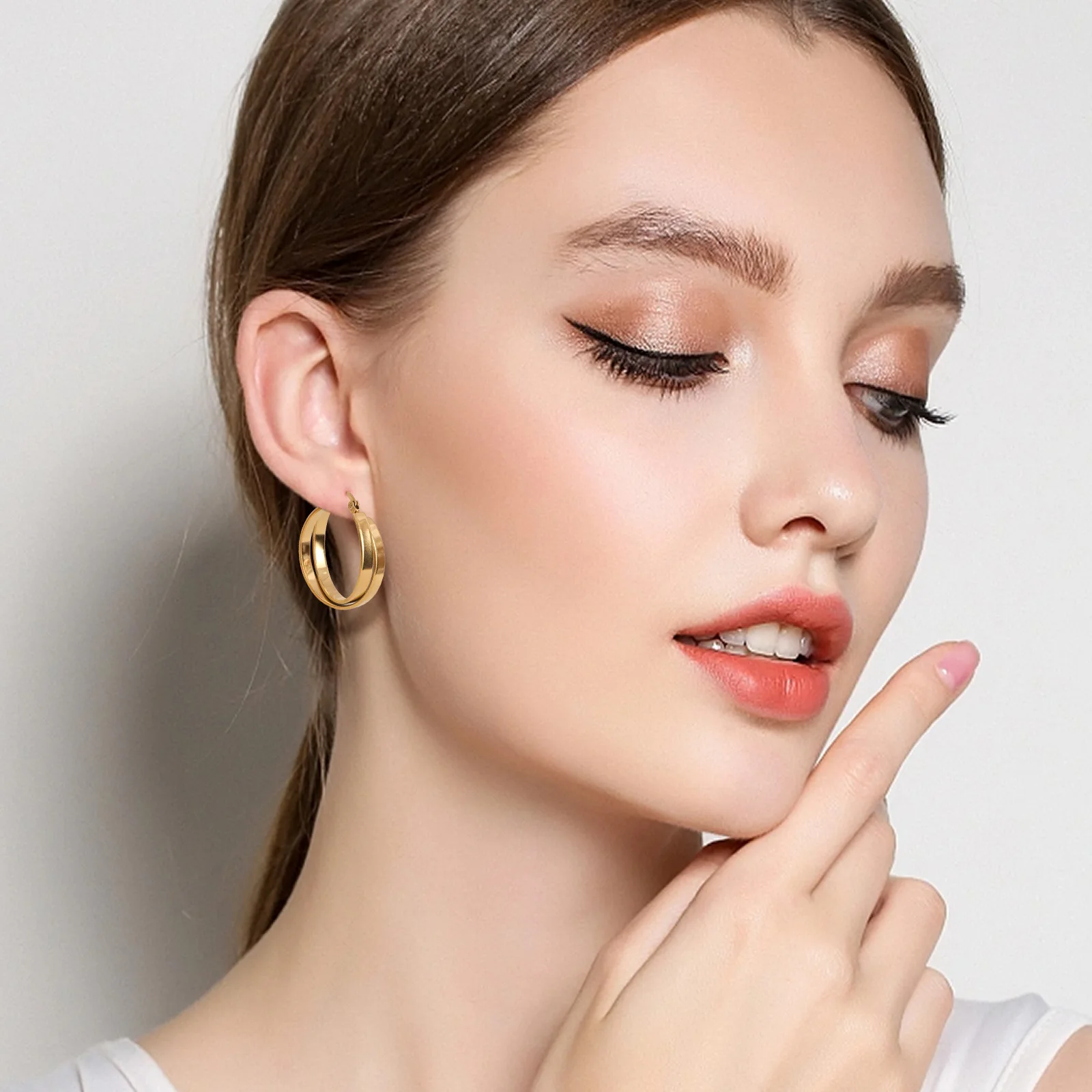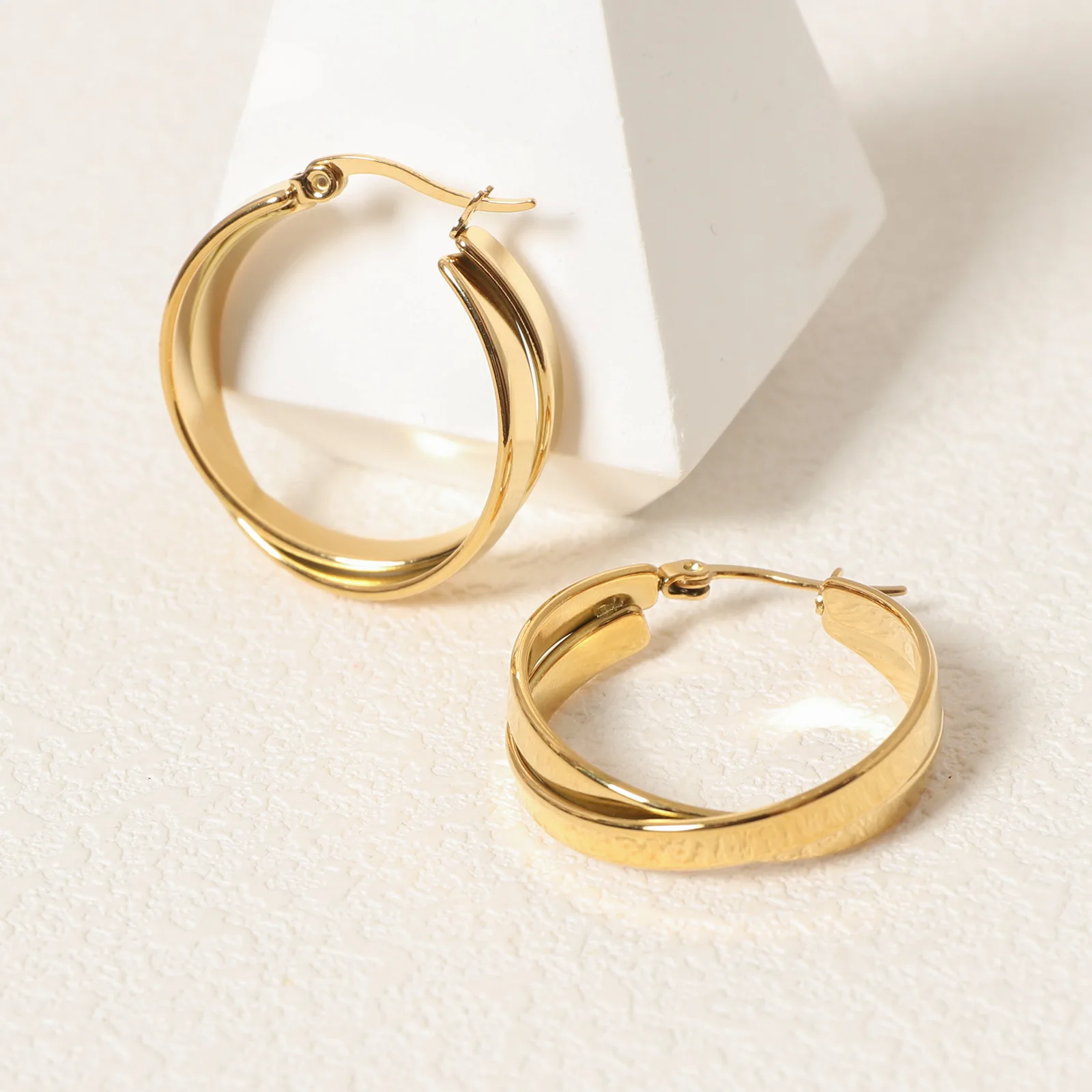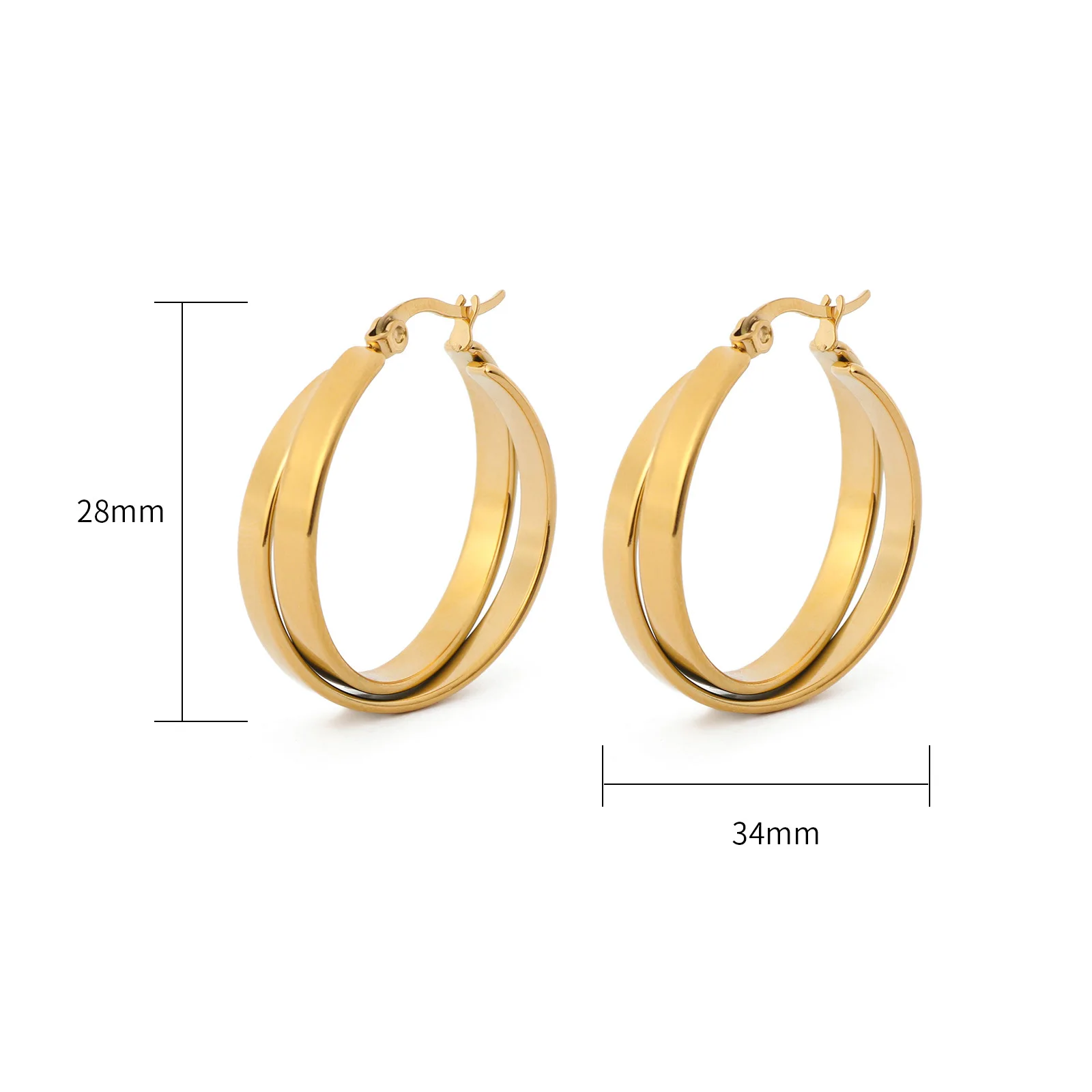 Elegant Double U-Shaped Hoop Earrings for Women Stainless Steel Real 18K Gold Plated Jewelry Trendy Fashion Gift