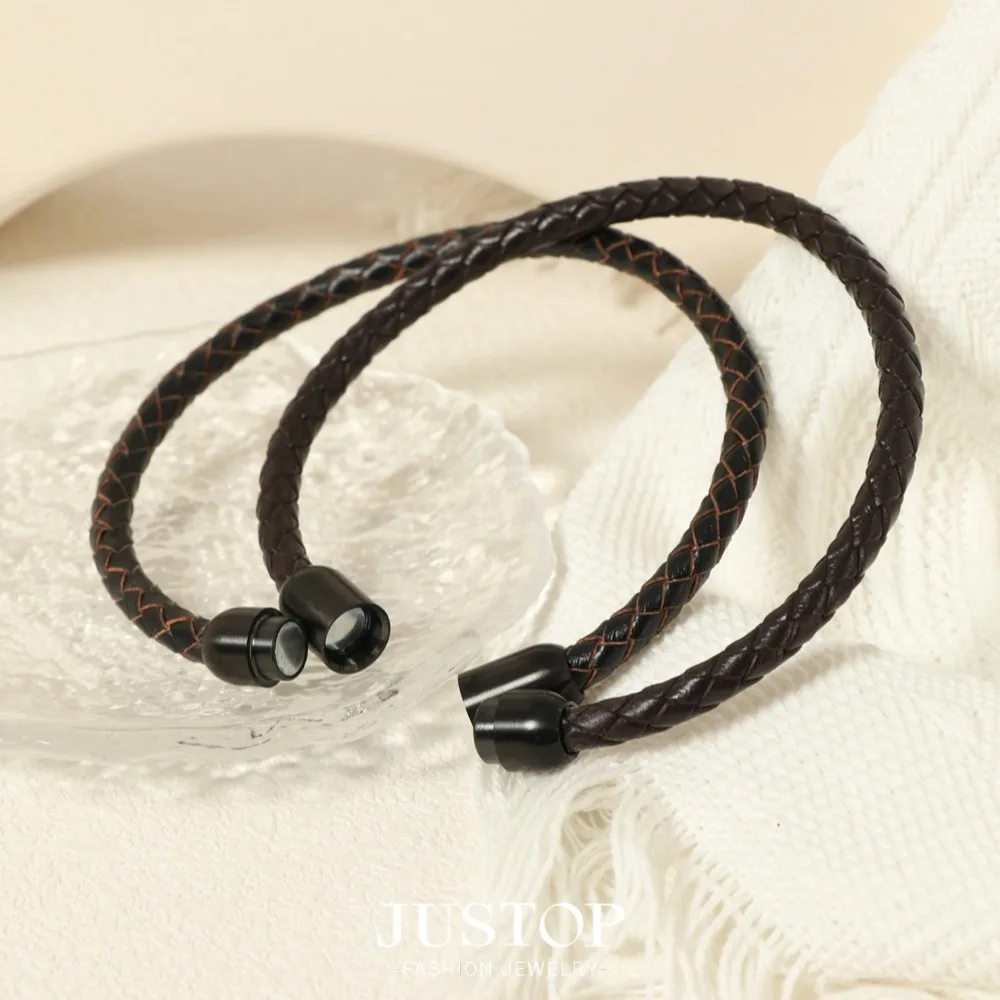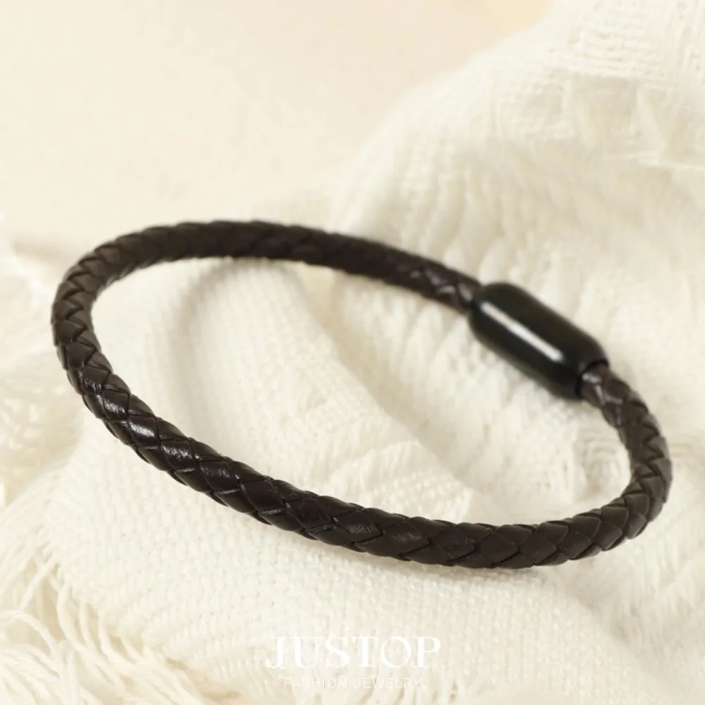 TRENDY Magnetic Stainless Steel Locker Strand Bracelet for Men Fashion PU Leather Braided Pattern Bangle Gift