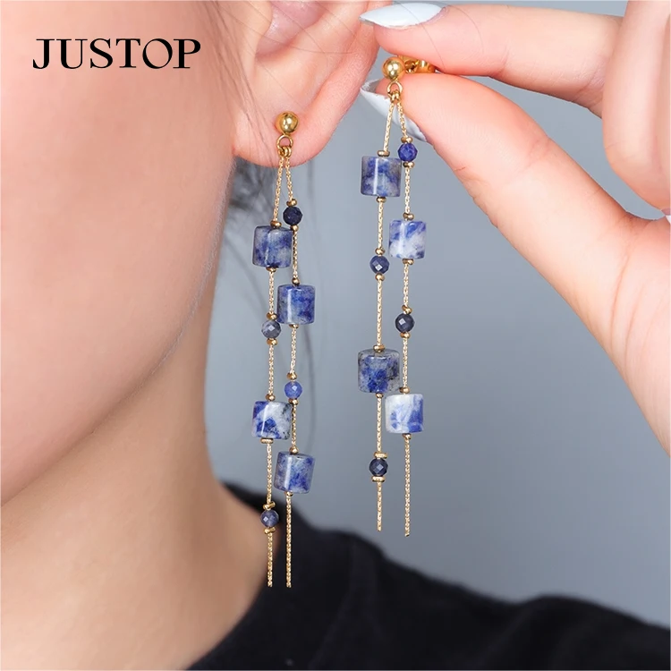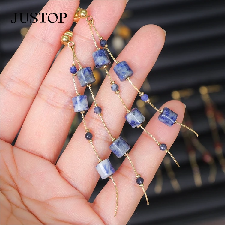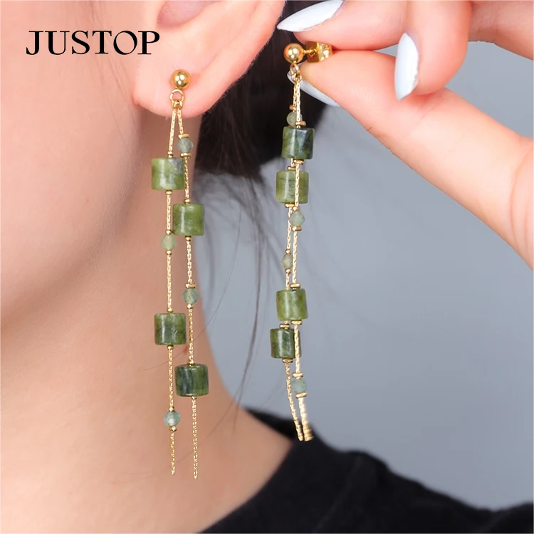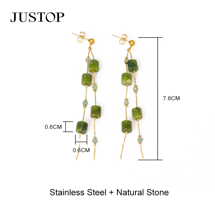 18K Gold Plated Agate Natural Stone Drop Earrings Fashionable Stainless Steel Chain Link for Gift