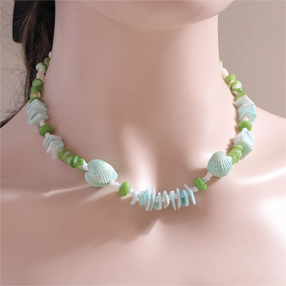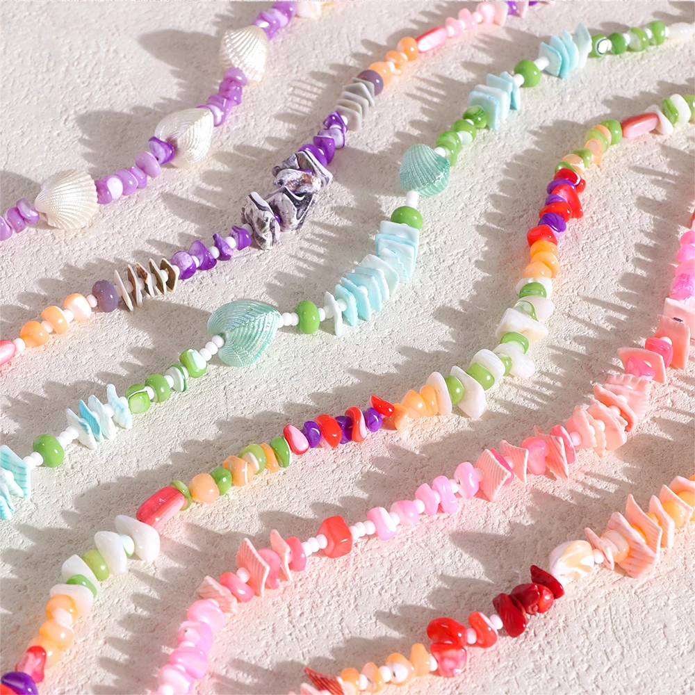 Summer Boho Beach Jewelry Must-Have Handmade 18K Gold Plated Stainless Steel Chain Polished Natural Shell Necklace Parties