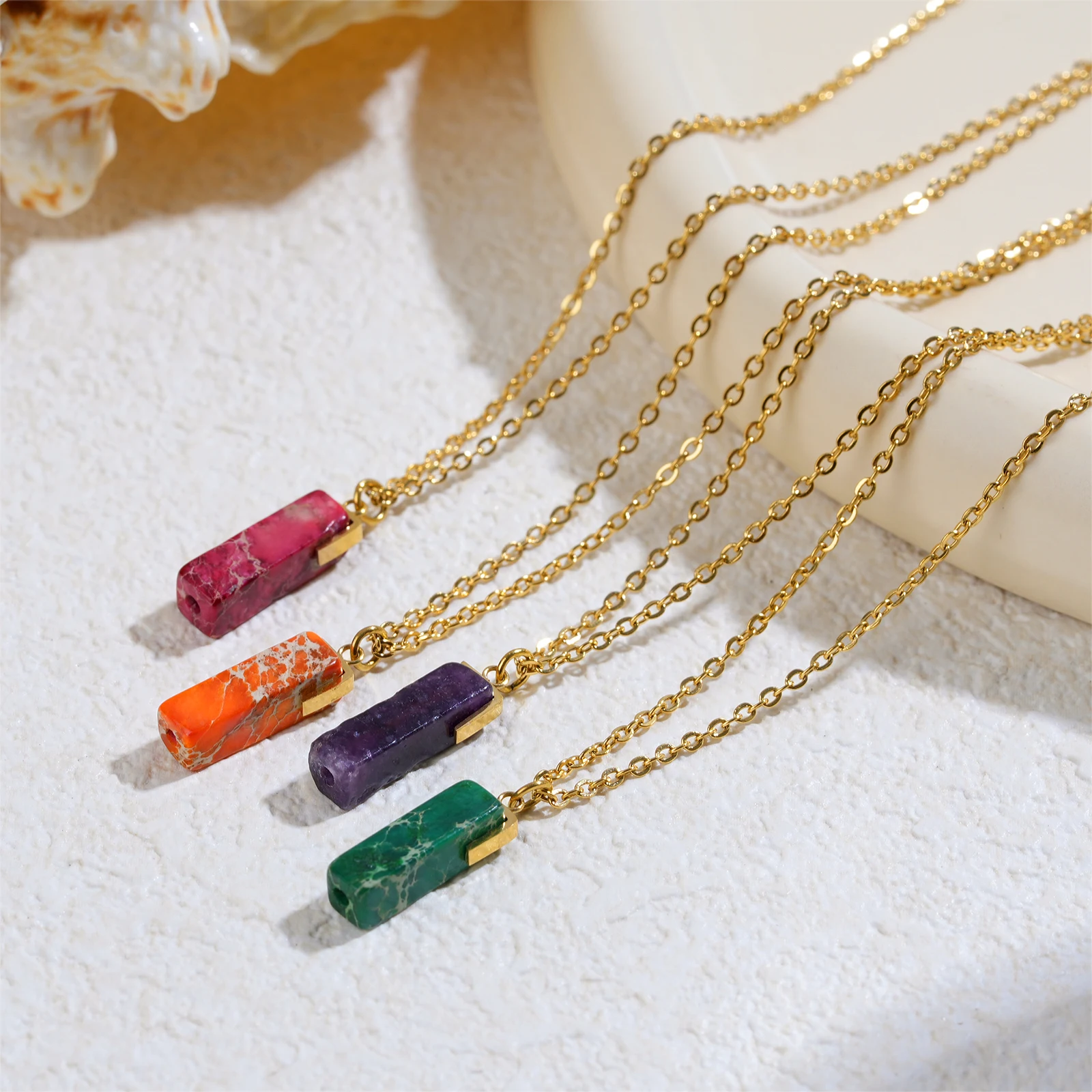 Romantic 18K Gold-Plated Link Chain Necklace Butterfly Pendant Amethyst Geometric Design Claw Setting Stainless Steel Necklace