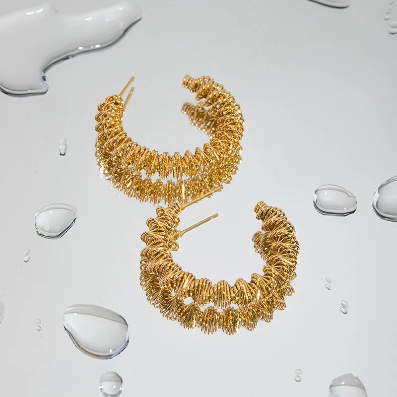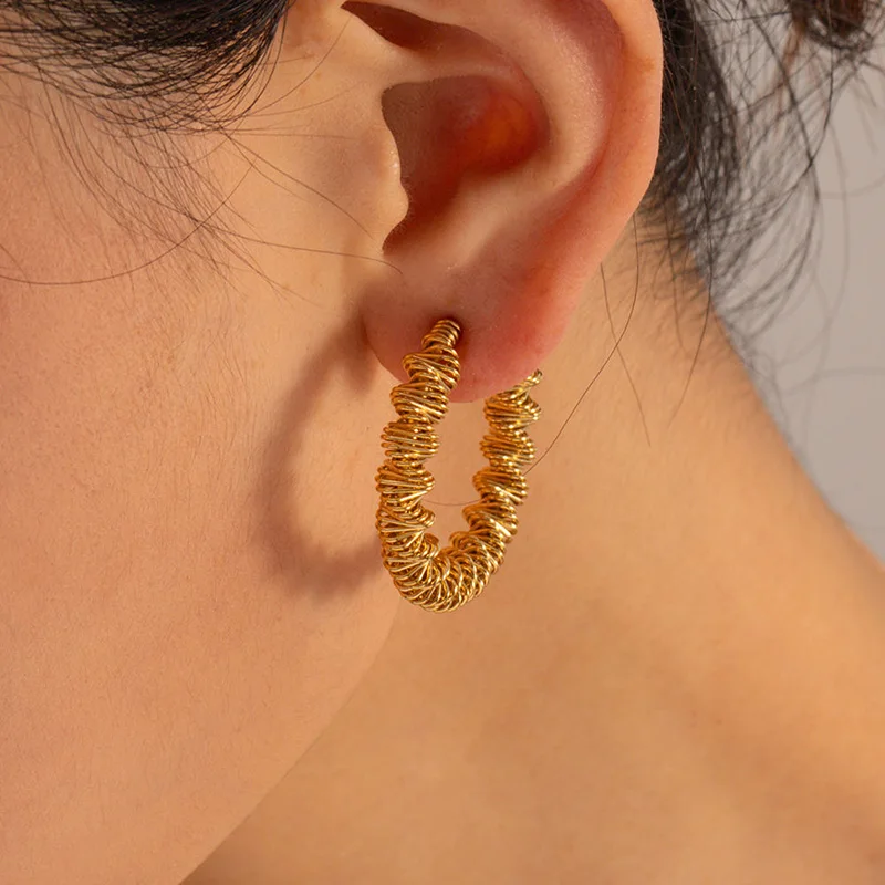 Women's 18K PVD Gold Plated Stainless Steel Grass CC Earrings Big Screw Twisted Drop Earrings with Dainty Ball Shape Jewelry
