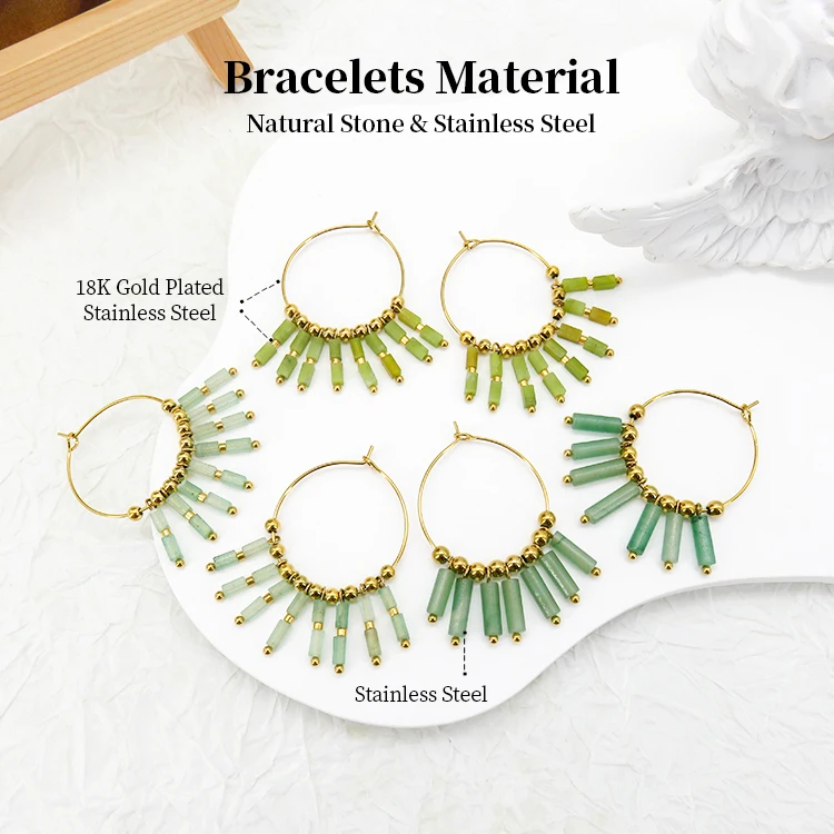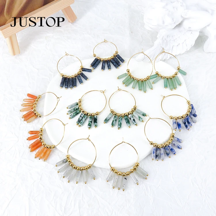Creative Bohemian Fashion Drop Earrings Geometric Natural Stone Multi-Color Seed Bead Tassel Accessories Personality Jewelry
