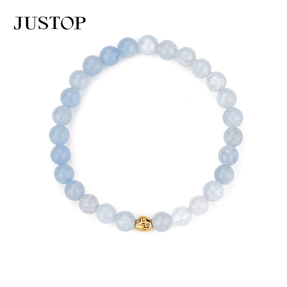 Natural Bead Bracelet Men Women Healing Crystal Jewelry Elastic Stretch Trendy Minimalist Gold Accent Anniversary Gift
