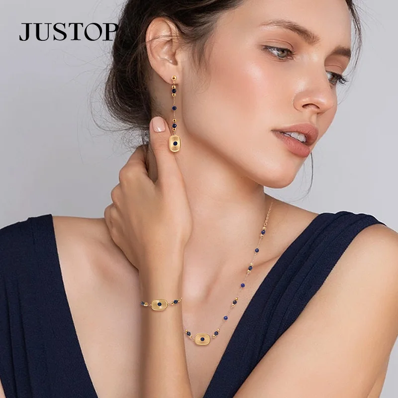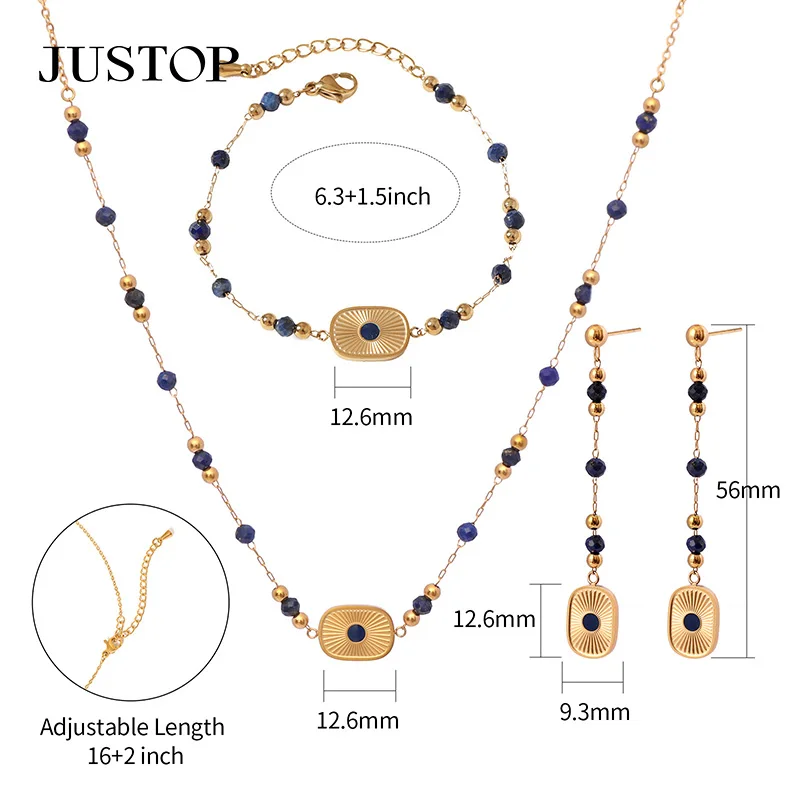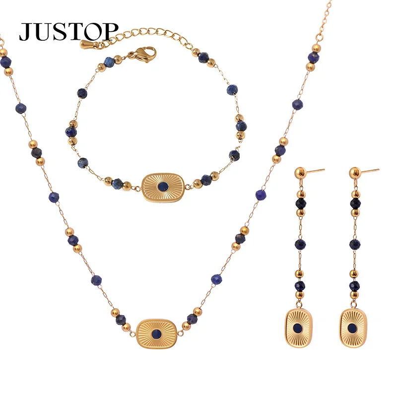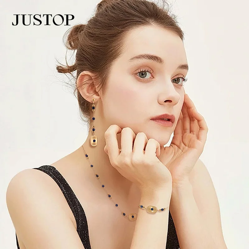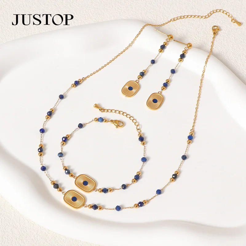 Necklace Jewelry Set Waterproof Beaded Bracelet Bean Enamel 18k Gold Plated Stainless Steel Chain Stud Set