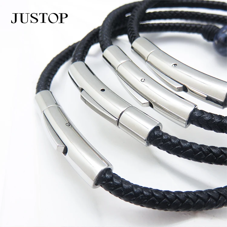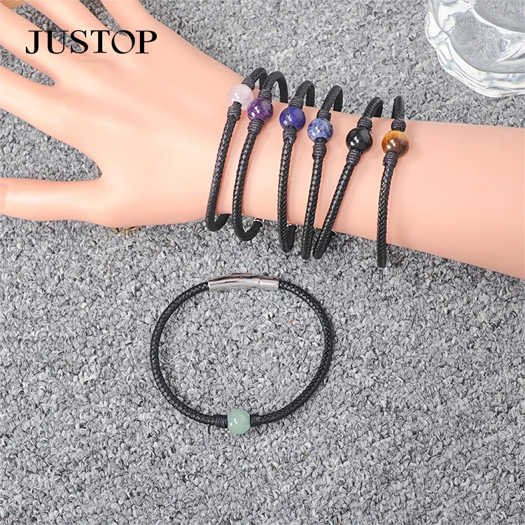 Vintage Statement Stainless Steel Gemstone Rope Round Bead Bracelet Set Trendy Charm Bracelets for Men and Women Gift