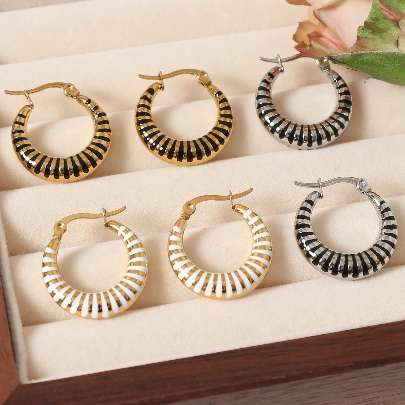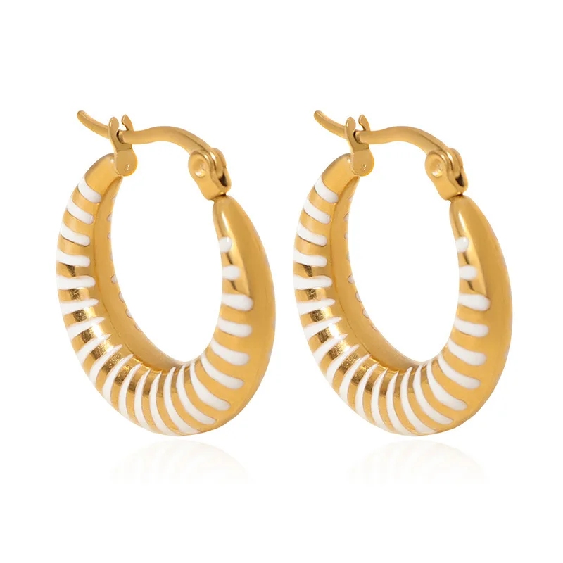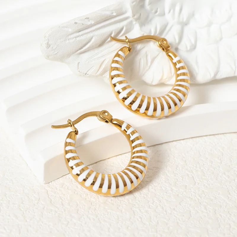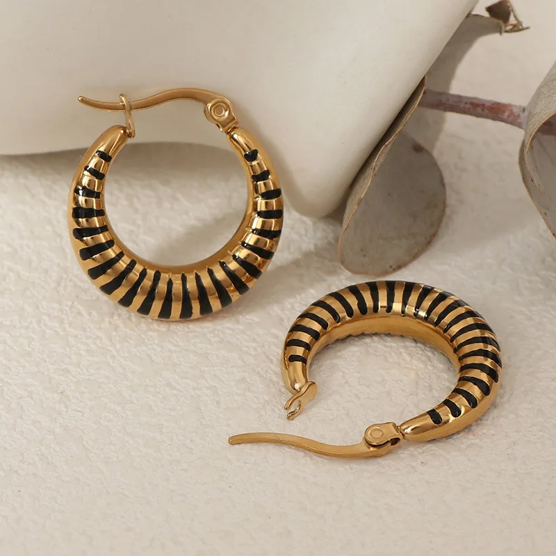 European American Fashion Simple Real Gold PVD Stainless Steel Dripping Oil Earrings for Women Hot Selling Trendy HOOP Hook