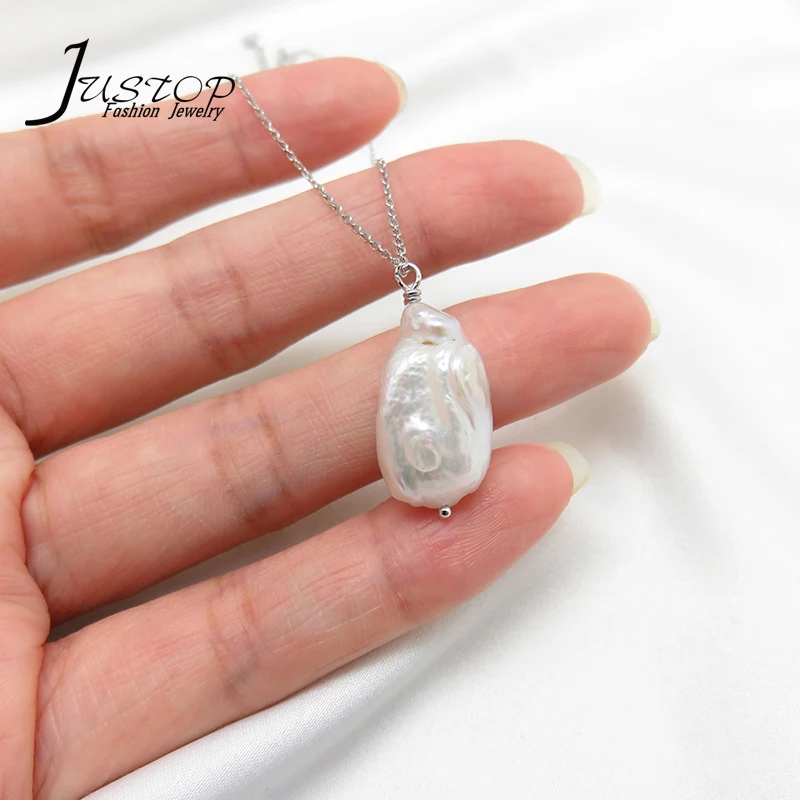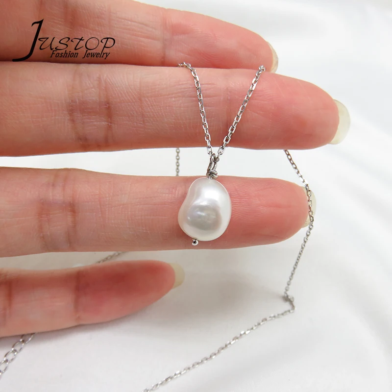 Wholesale Luxury 925 Sterling Silver Fashion Jewelry Pendants & Charms Chain Wedding Baroque Pearl Choker Necklace for Women