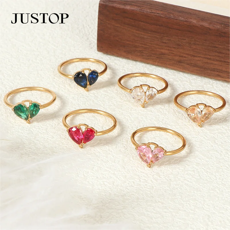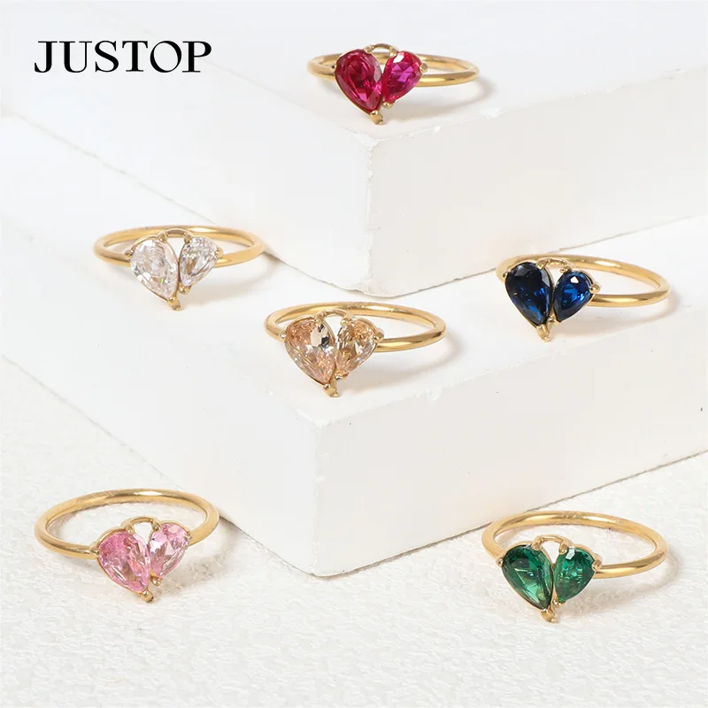 Wholesale Women's Zircon Stone Ring Geometric Stone Metal Inlaid Ring Jewelry Color Zircon Crystal Rings Stainless Steel 18 PVD