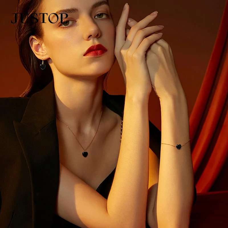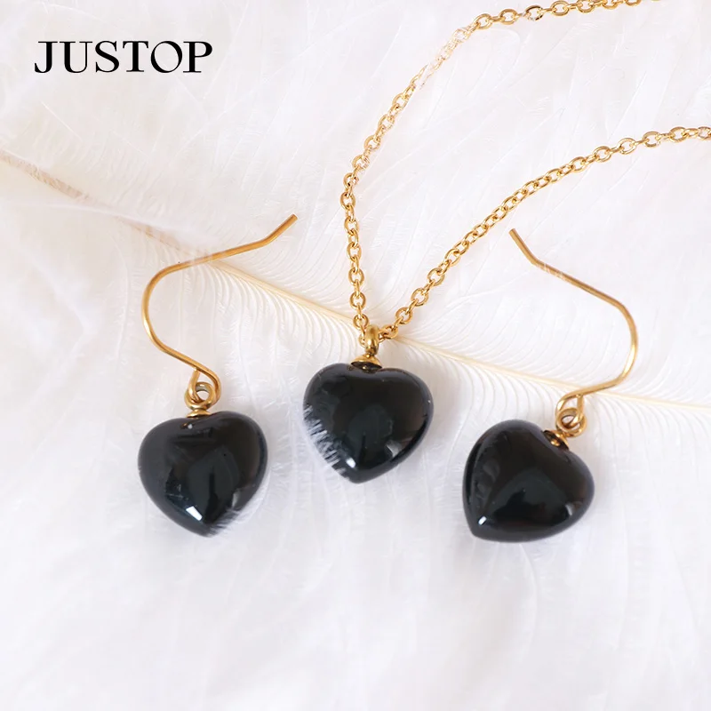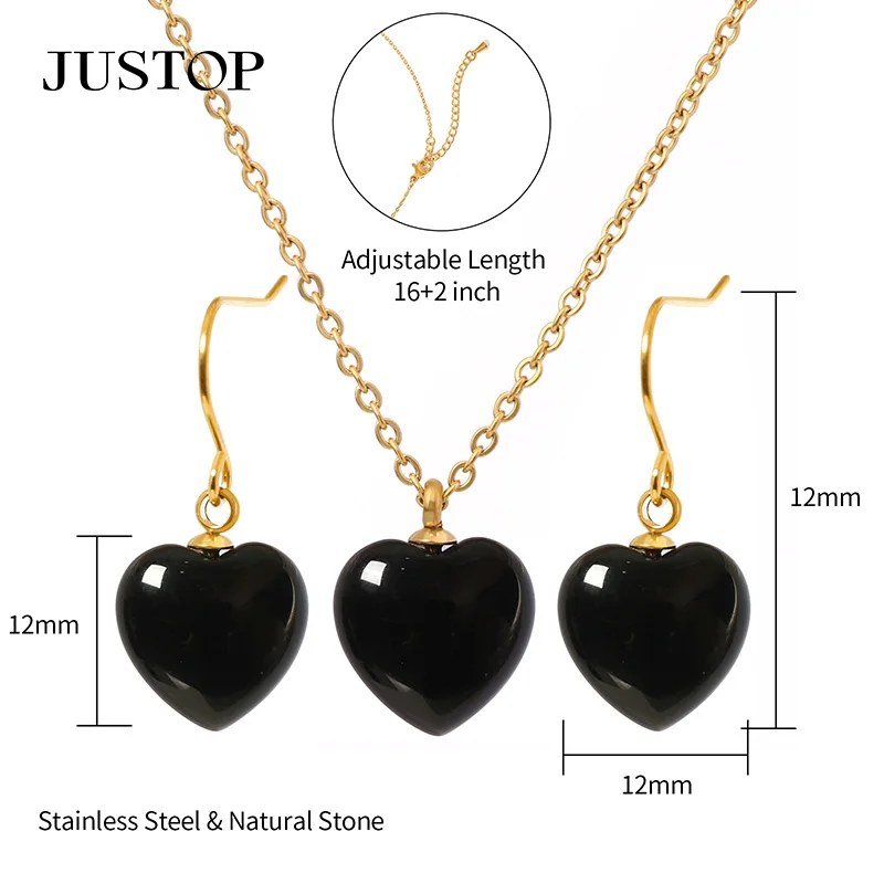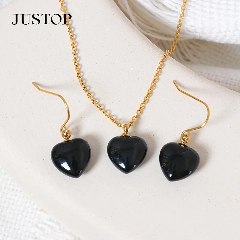 Fashion Natural Heart Stone Jewelry Sets 18k Gold Plated Black Women Necklace Earring Luxury Stainless Steel Jewelry Set