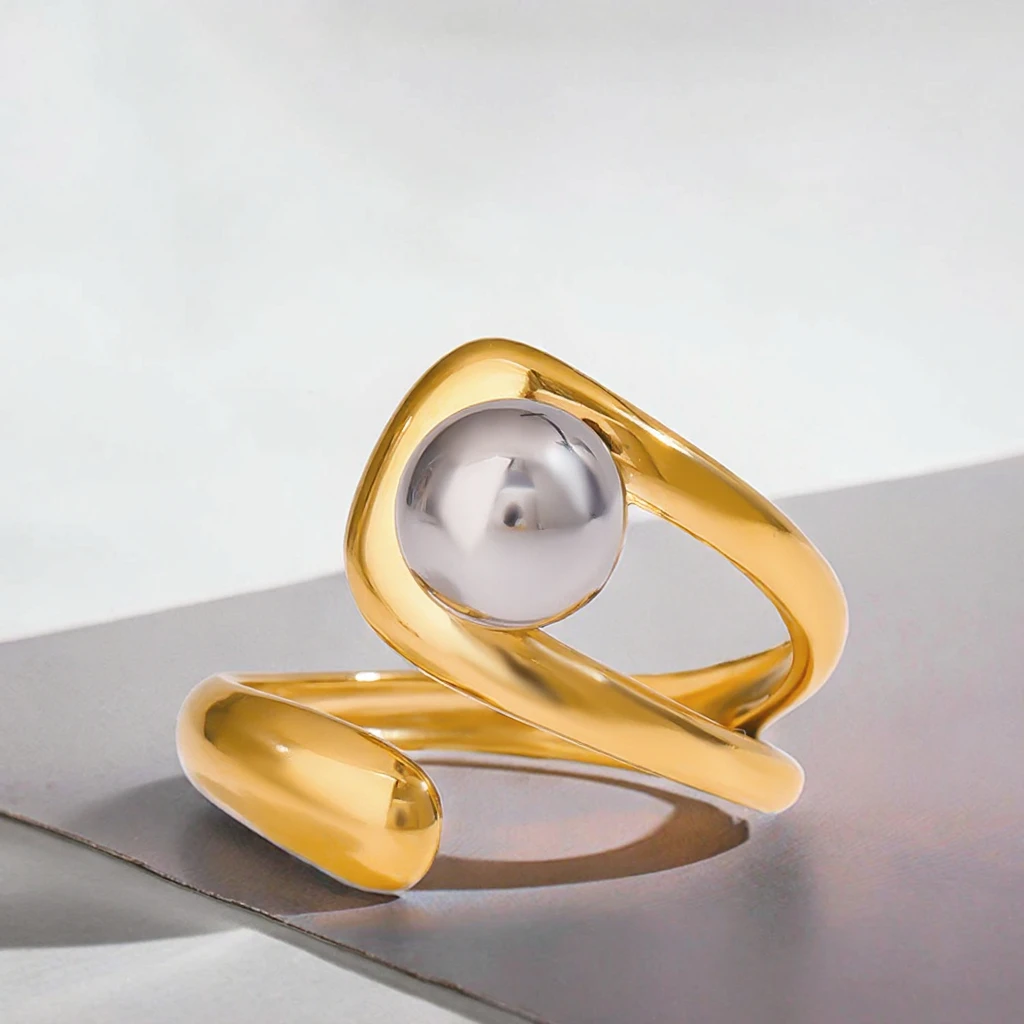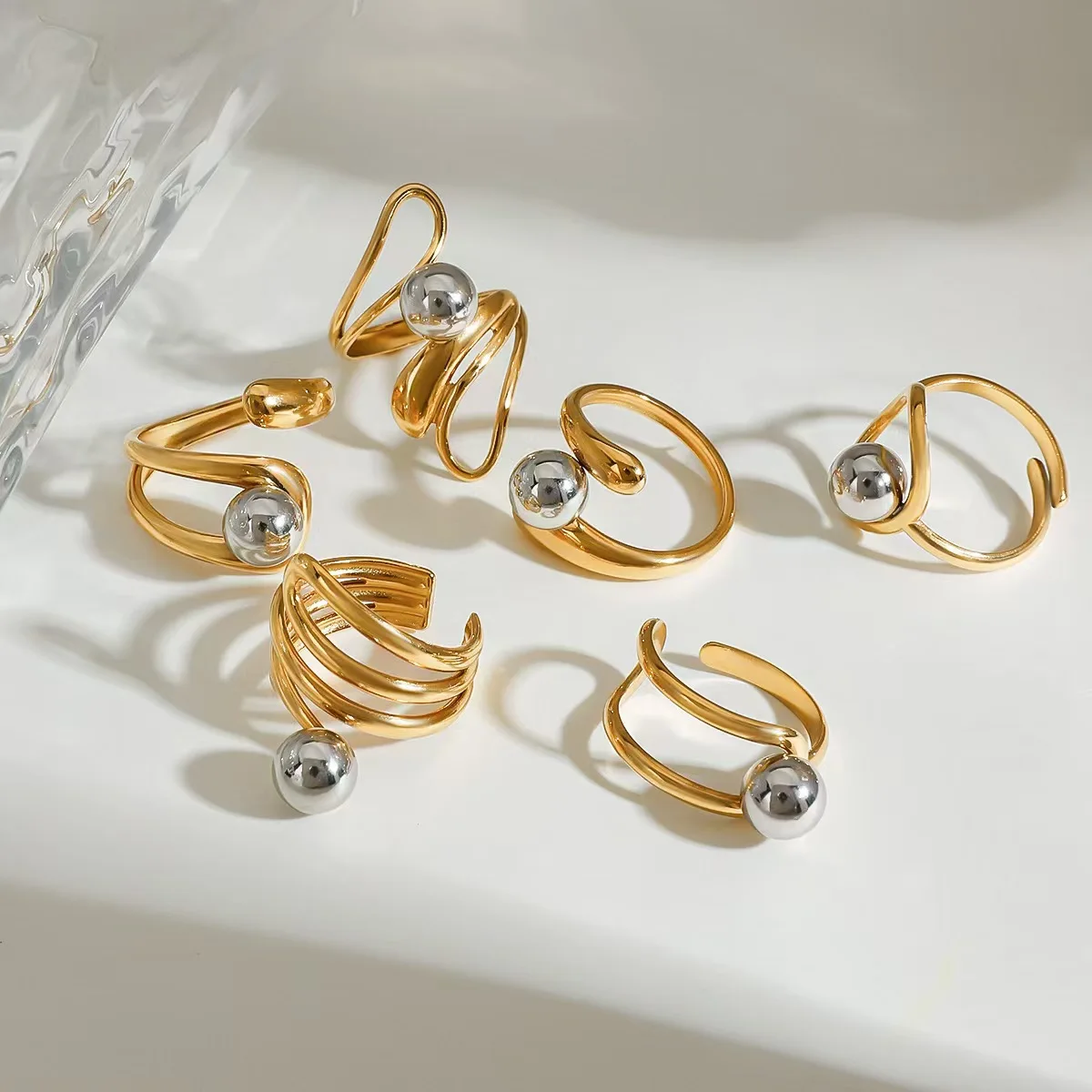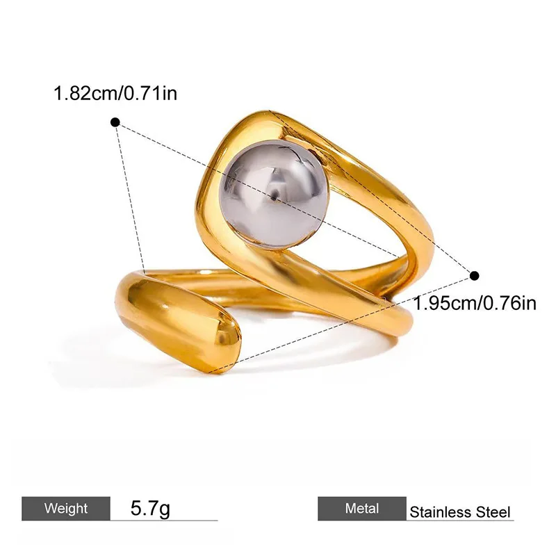 MW Women's Fashionable Modern Minimalist Stainless Steel Open Ring 18K Gold Plated Two Tone Cross Beaded Ball Engagement Rings