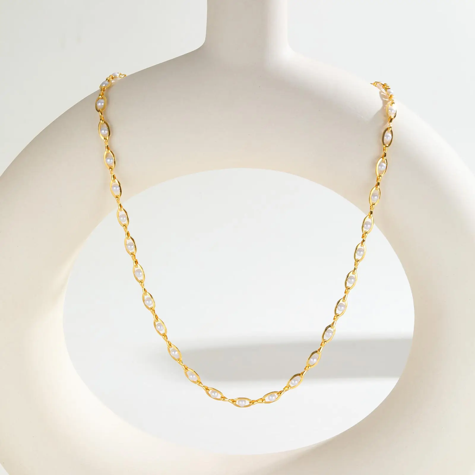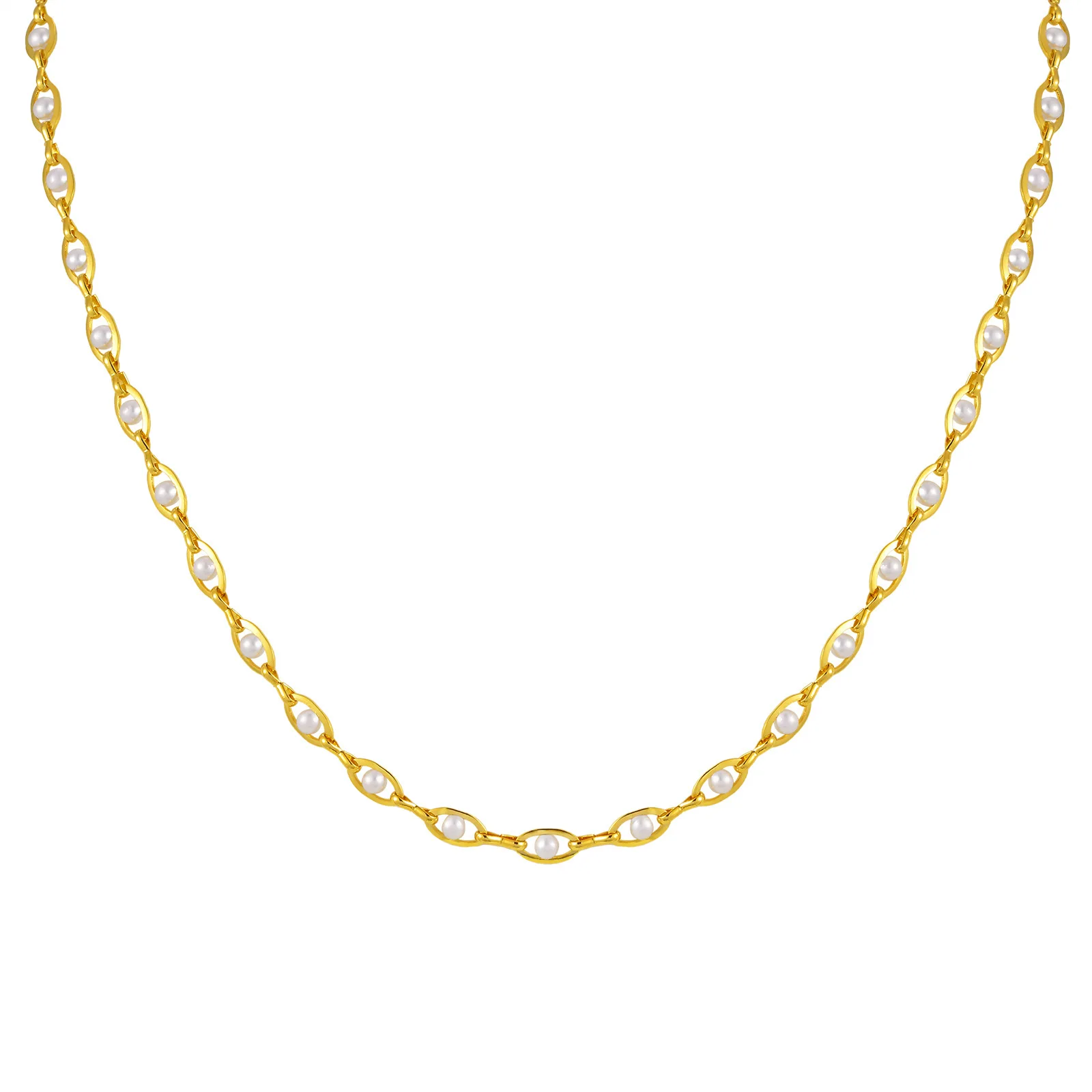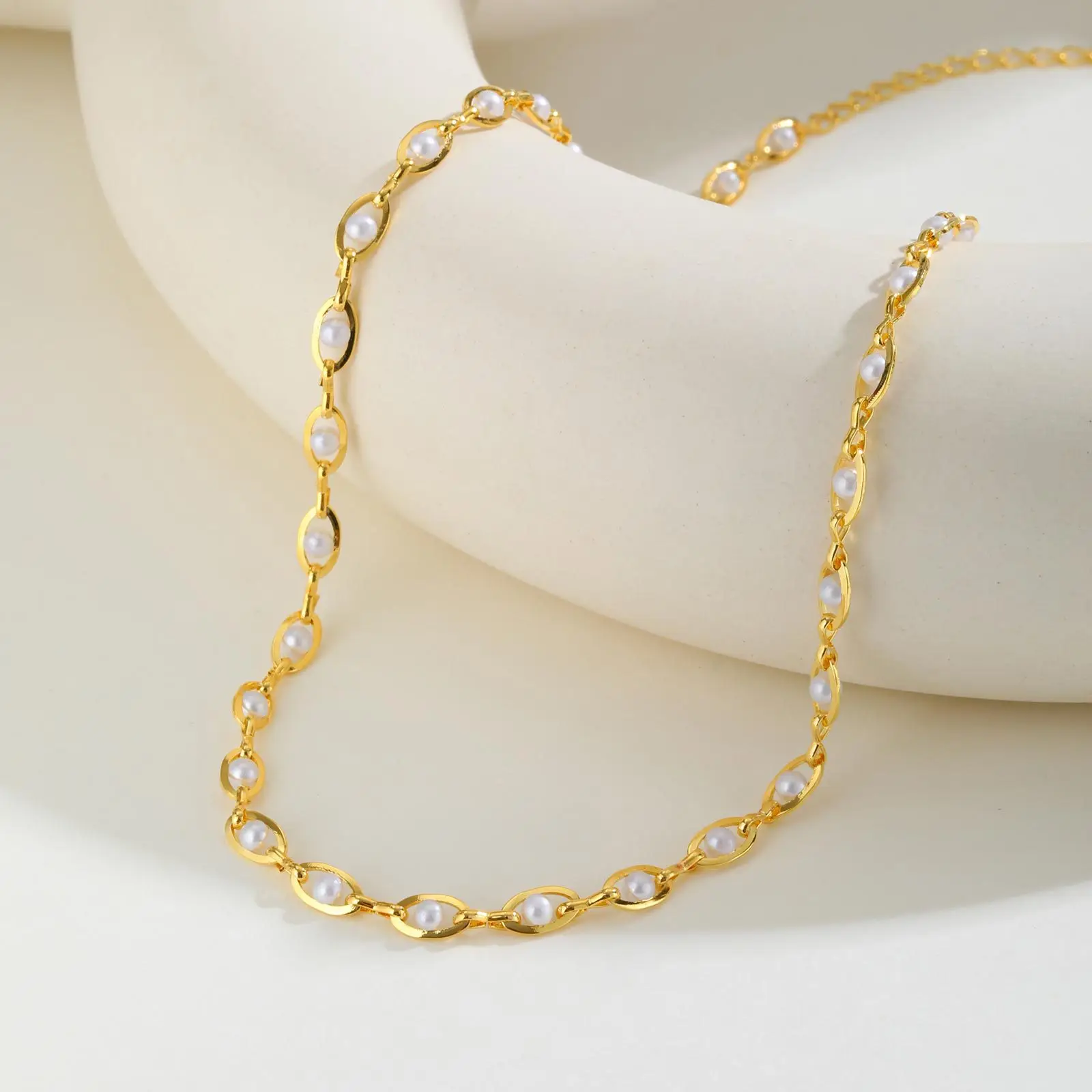 Ins Style Clavicle Chain Imitation Pearl Oval Necklace Women's Copper Gold-plated Clavicle Chain Necklace