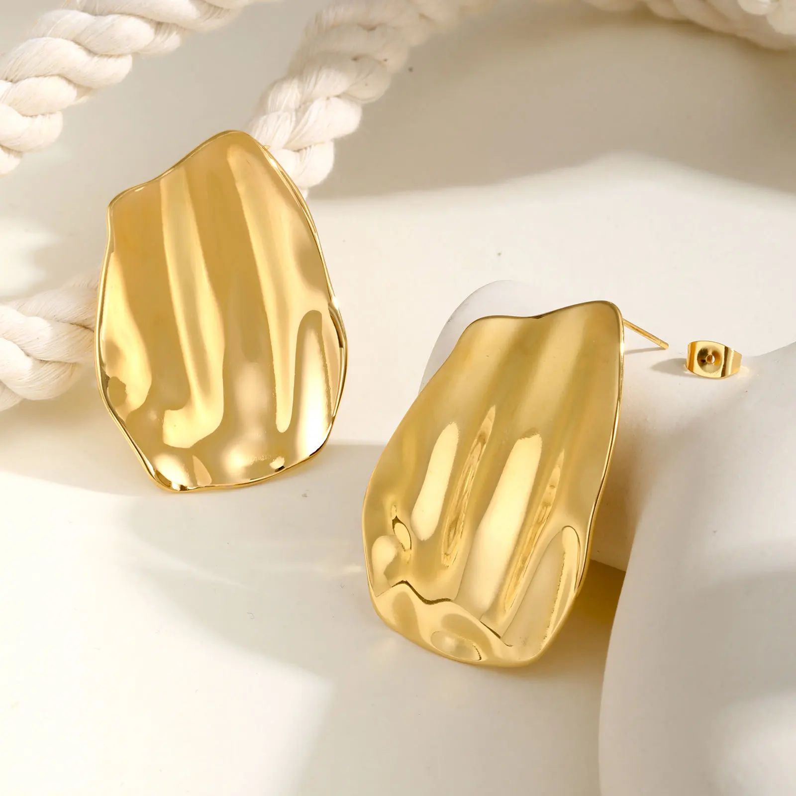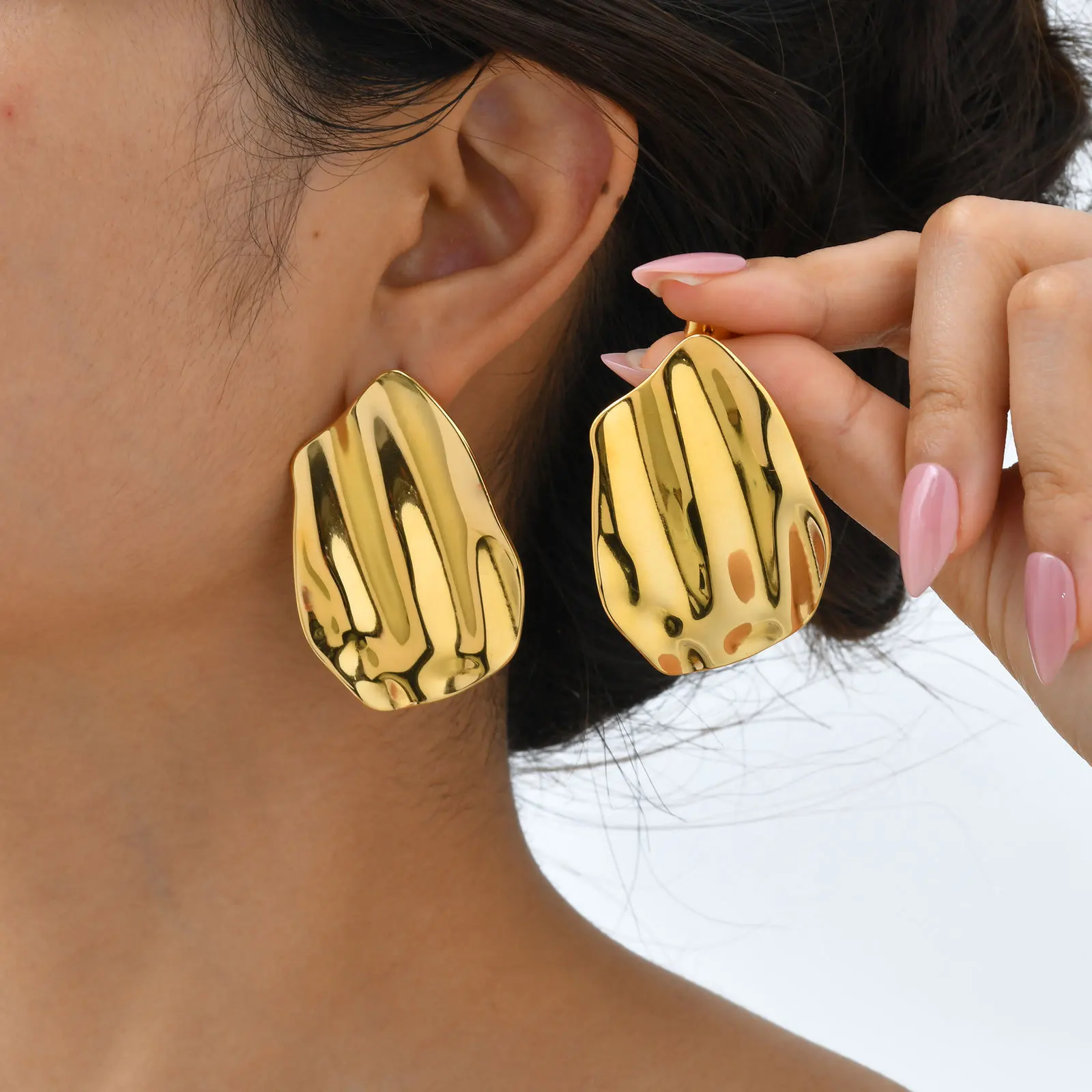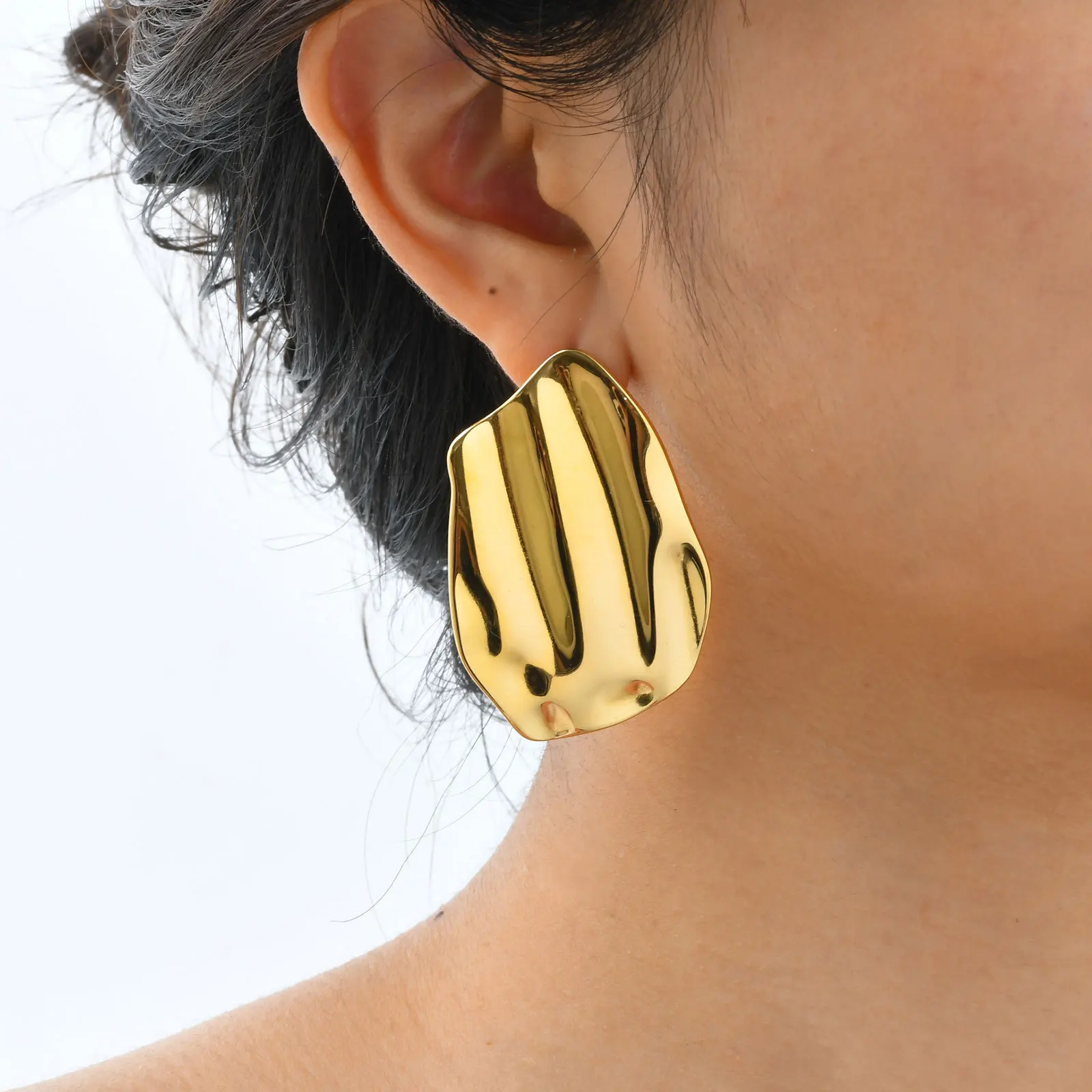 Factory Direct Selling Gold Plated Stainless Steel Jewelry Earring Women's Big Chunky Textured Stud Earring