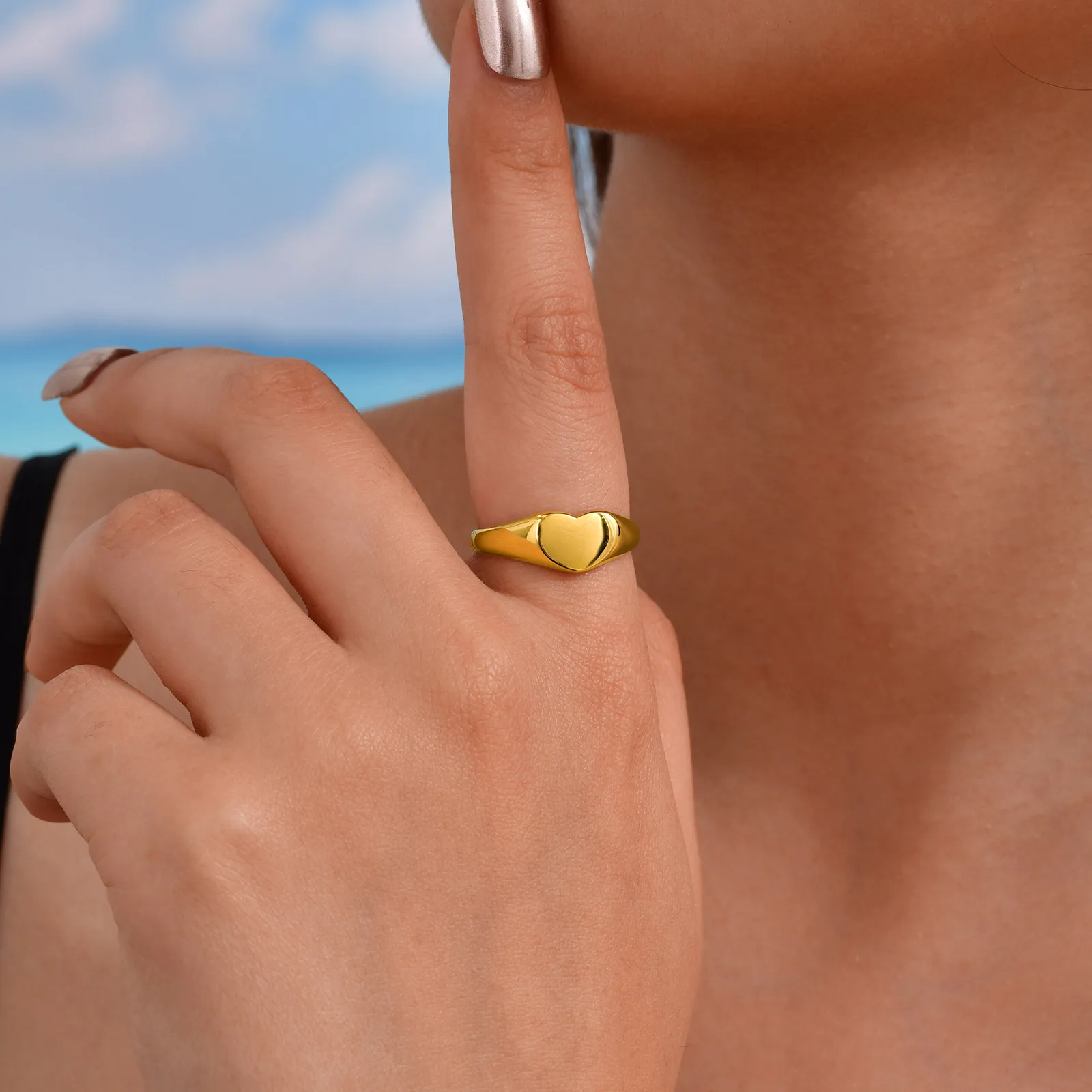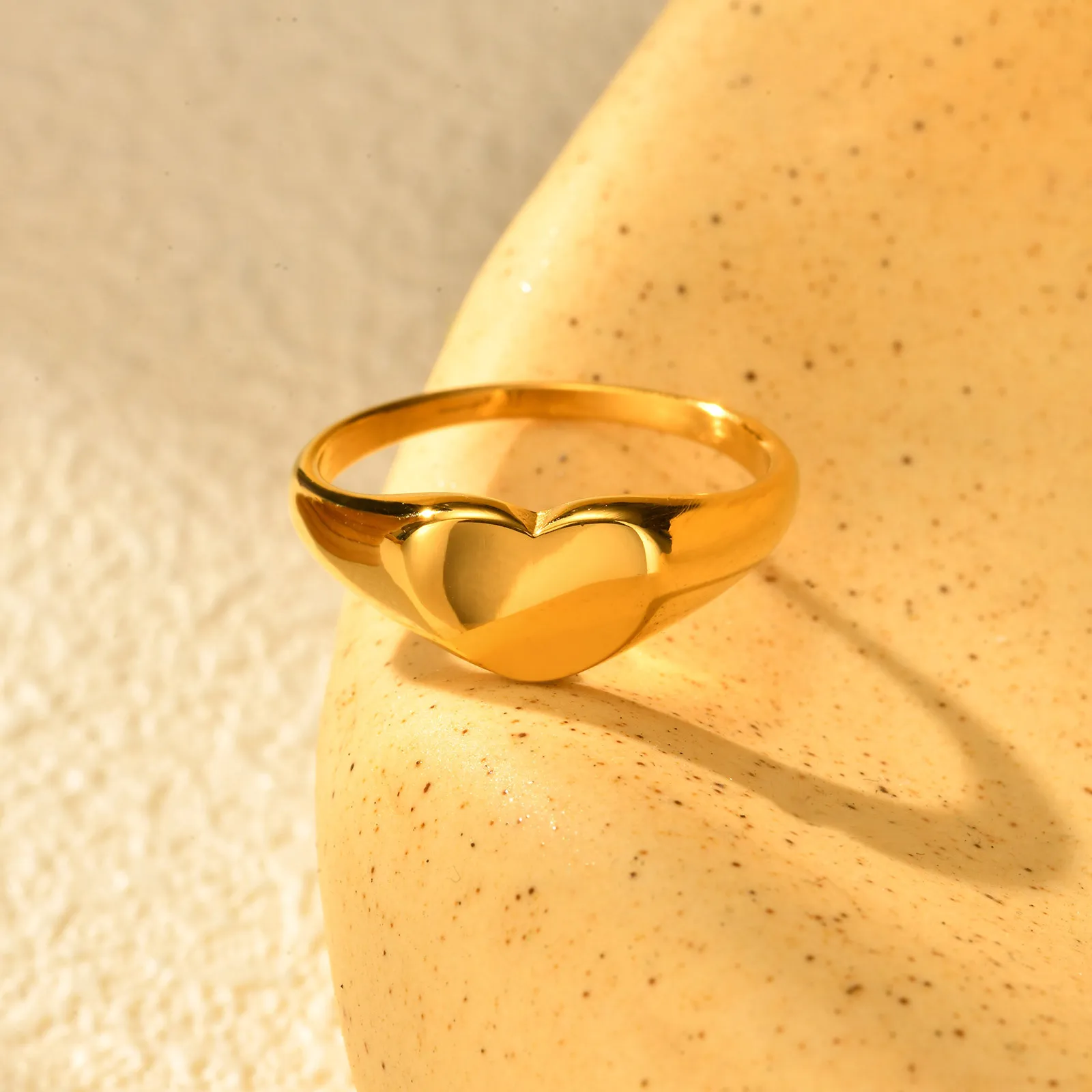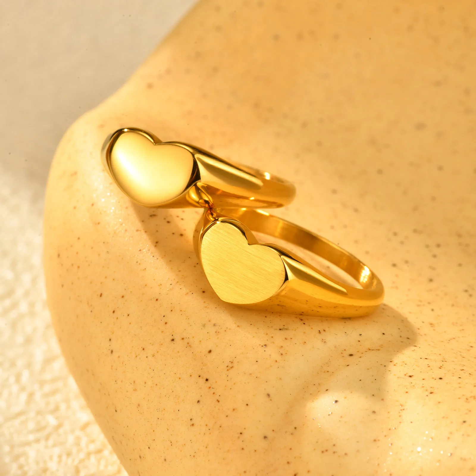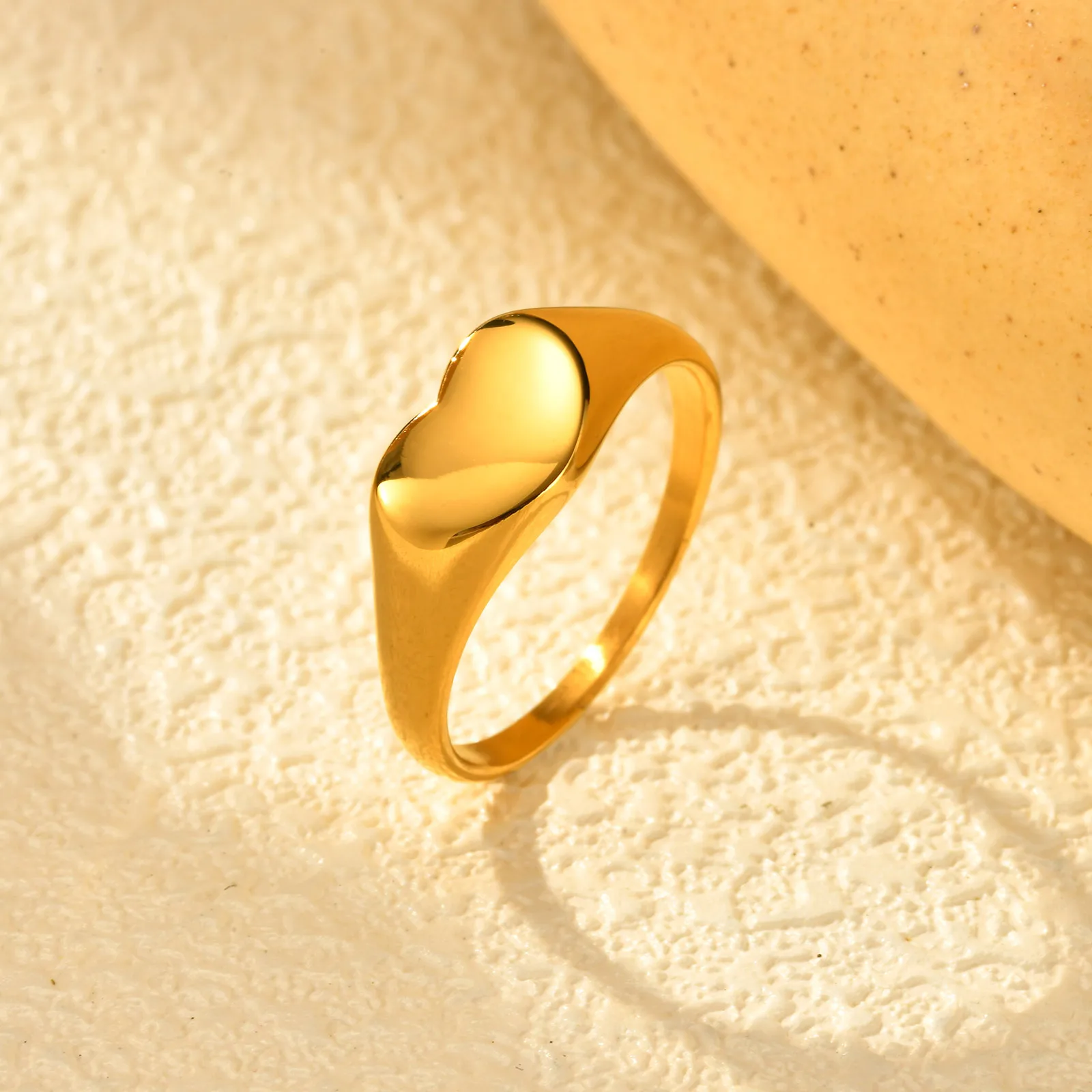 Custom Logo Non Tarnish Free Waterproof Jewelry Stainless Steel Chunky Blank Ring Women Men Love Heart Shape Finger Rings