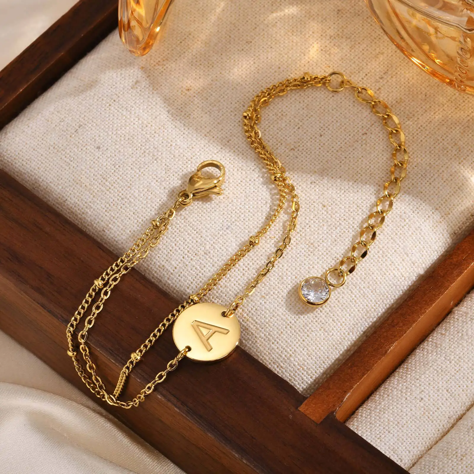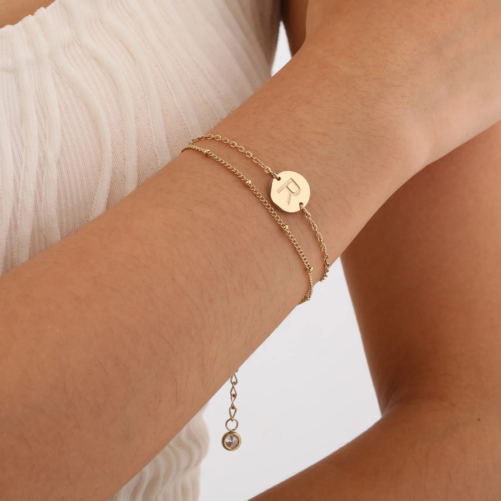 Hot Sale Optional 26 Alphabet Double-strand Bracelet 18k Gold Plated Stainless Steel Bracelets for Women