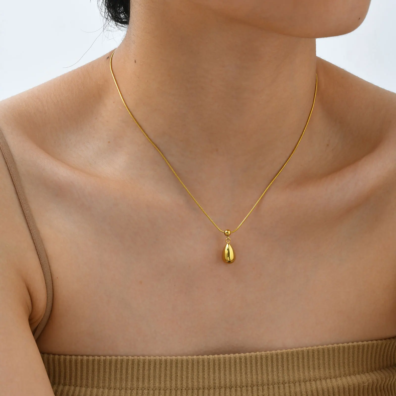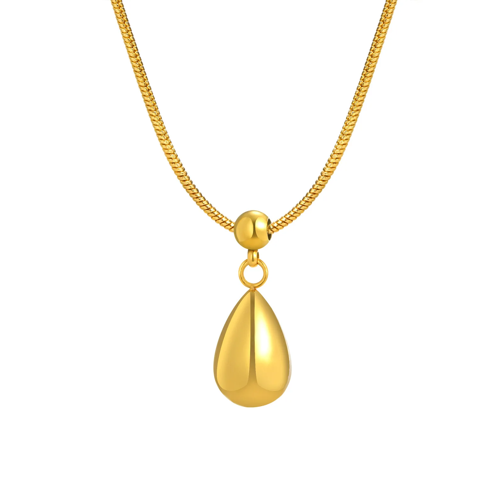 Best-selling Luxury 18k Gold Plated Stainless Steel Snake Chain Water Drop Pendant Necklace for Weddings Gifts