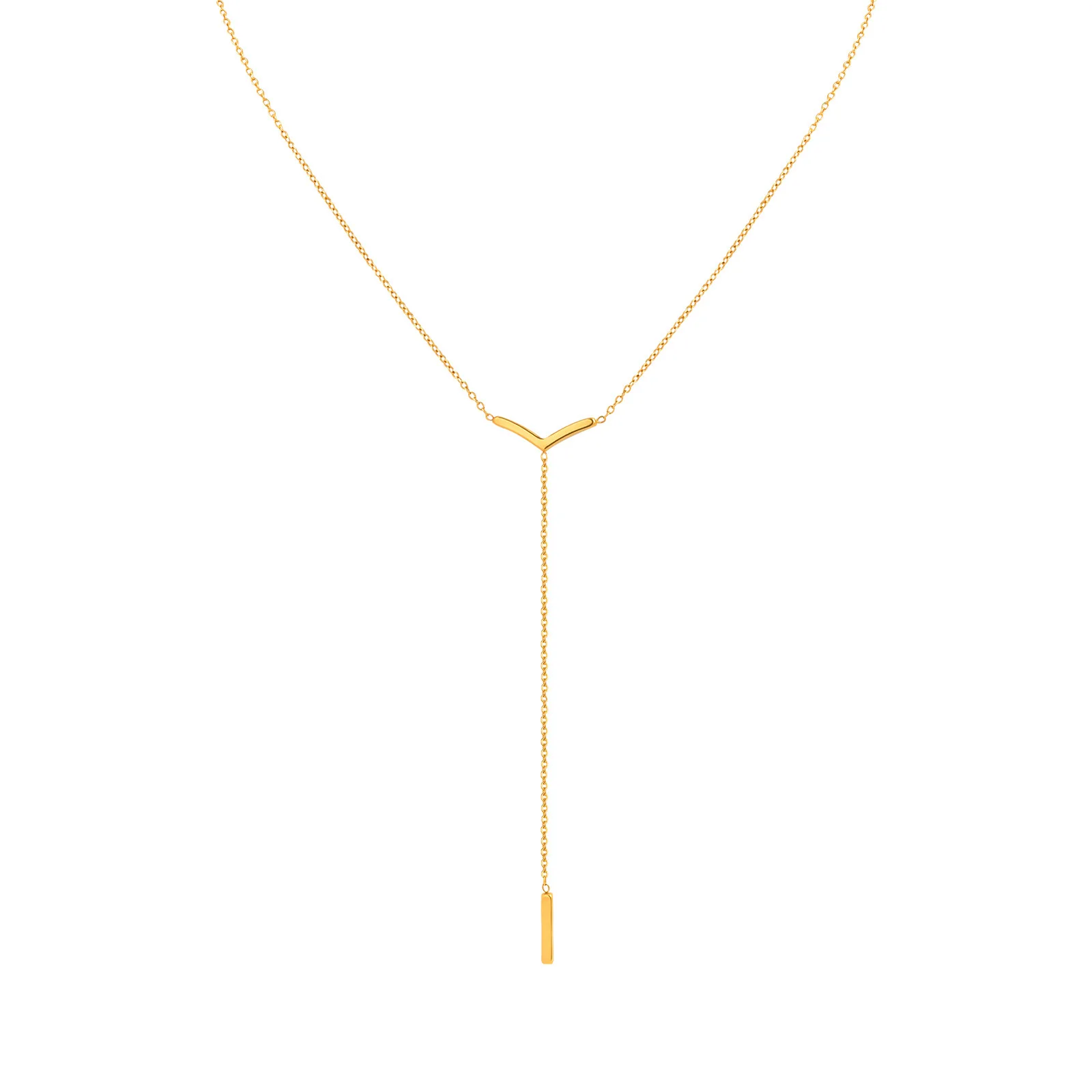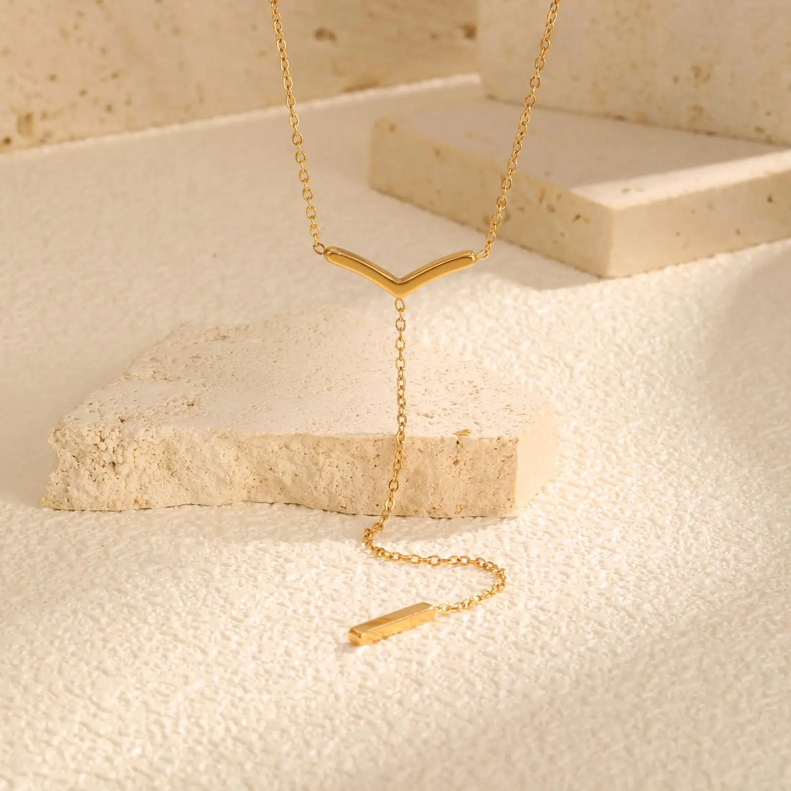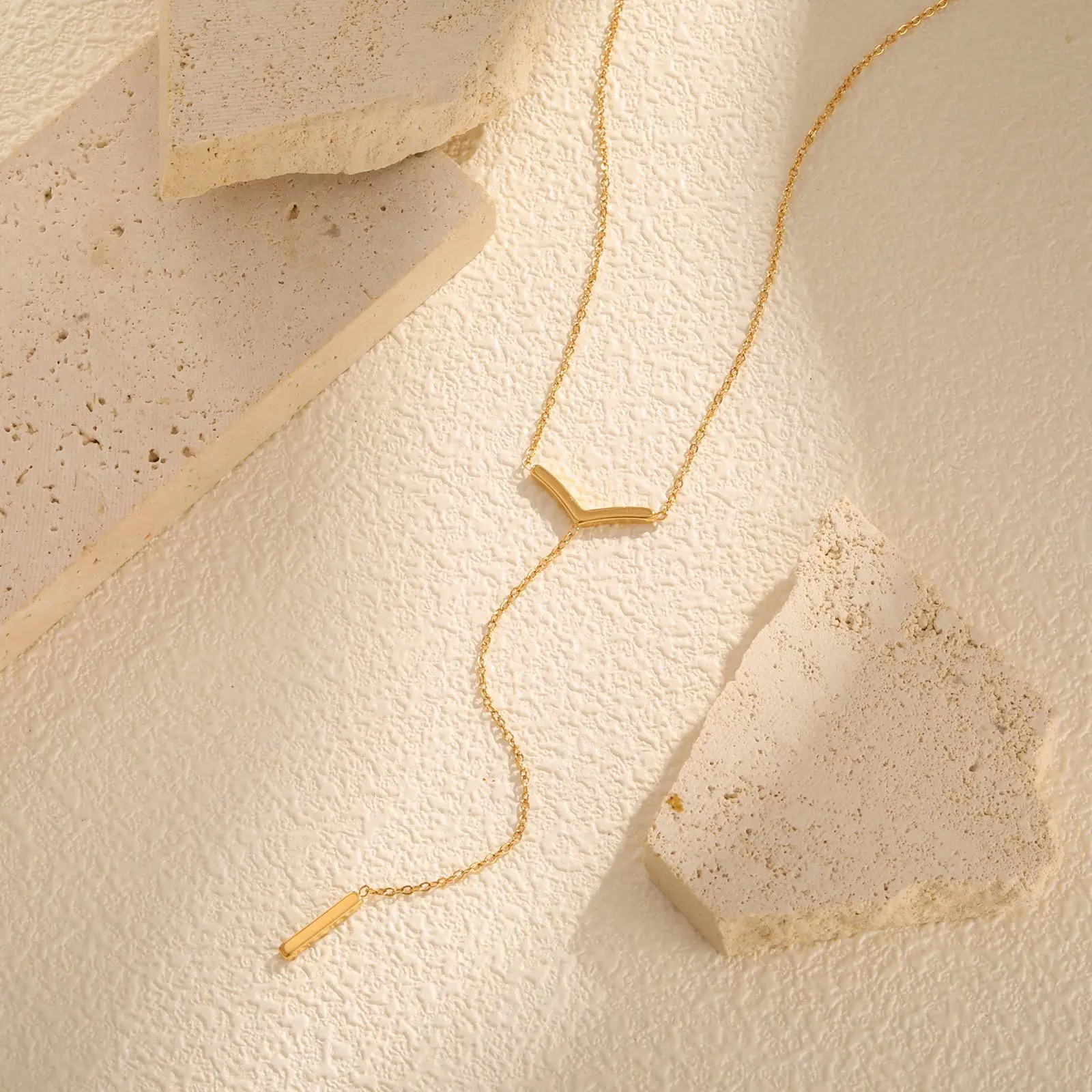New Trendy Stainless Steel Flat Cross Chain Y-shaped Pendant Necklace Long Clavicle Necklace for Women