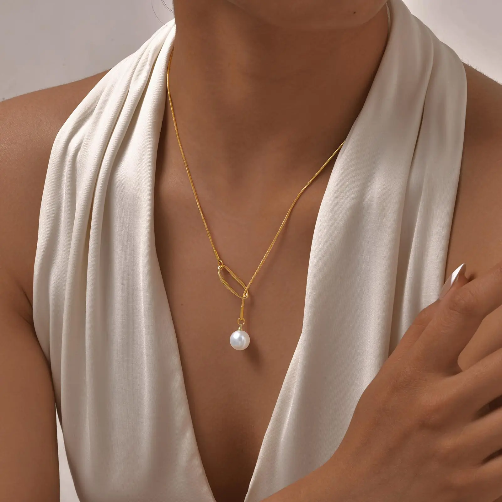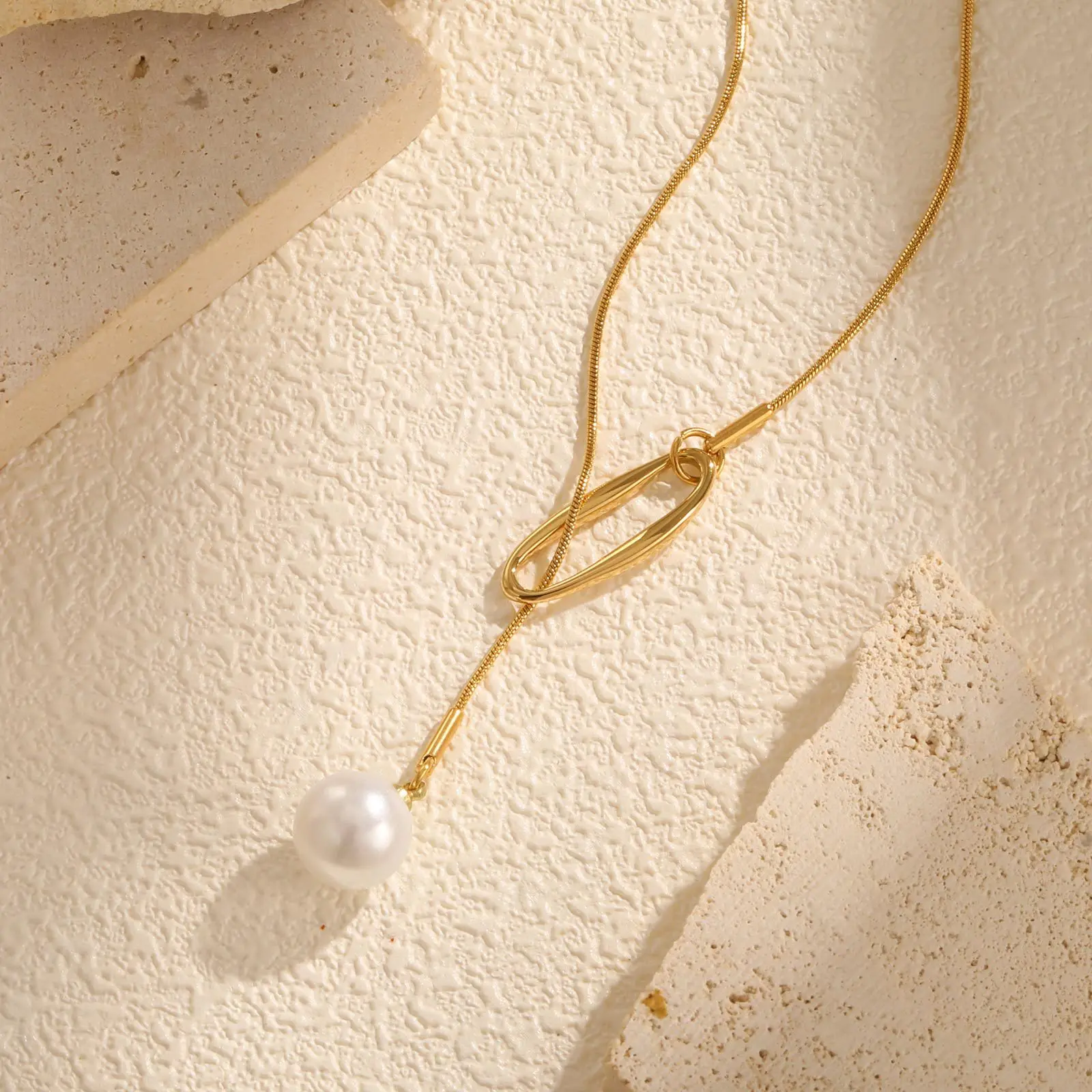 New Geometric Simple Long Good Y Shape Necklaces Adjustable Chain Stainless Steel Pearl Pendant Necklace