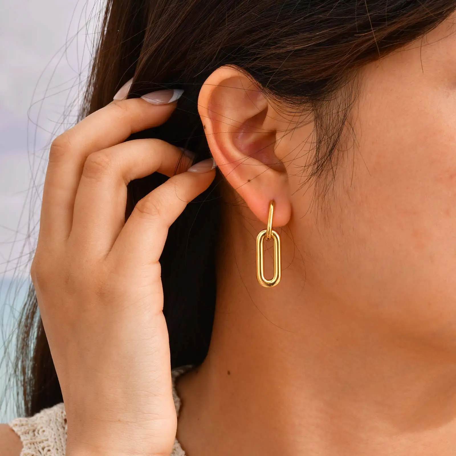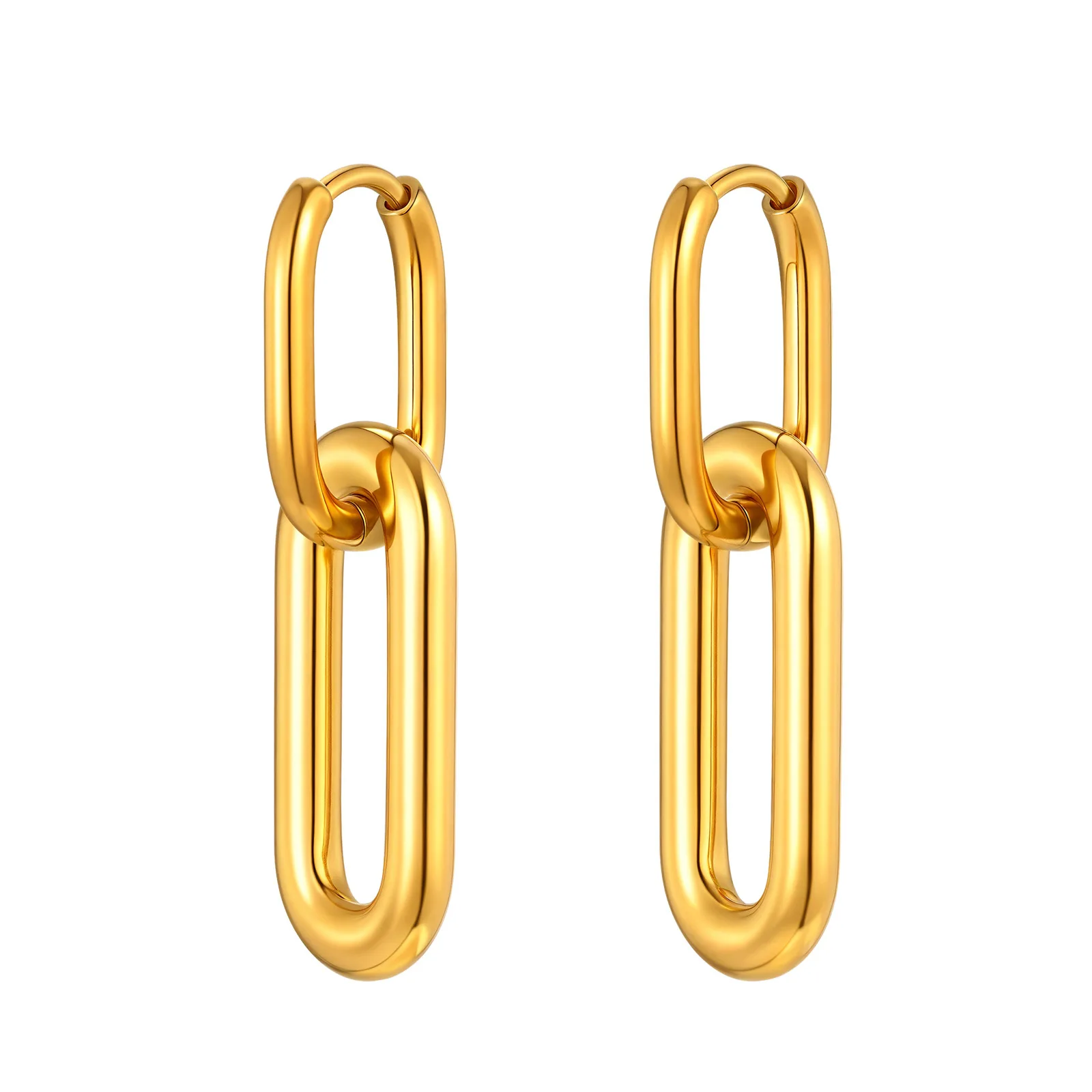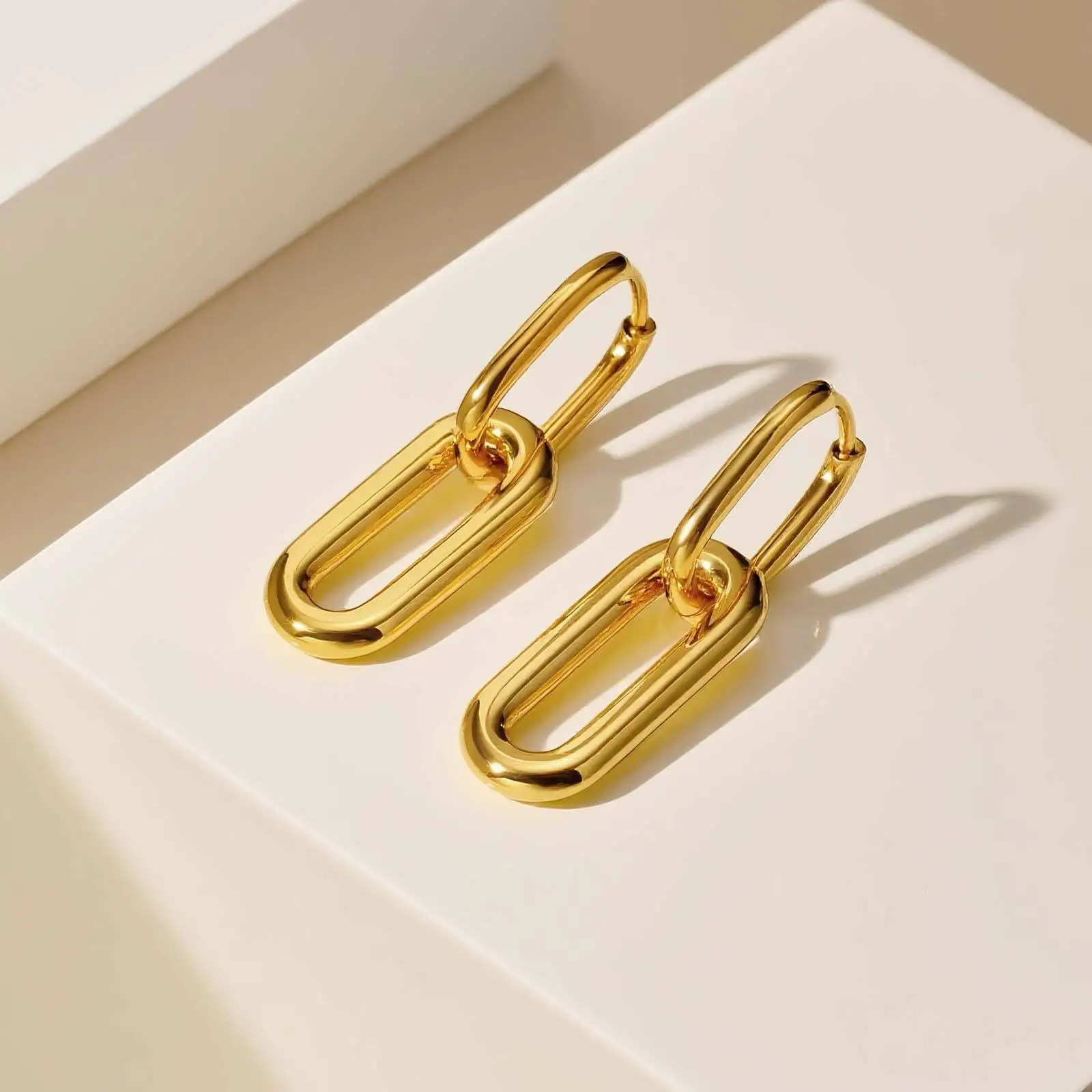 Simple Design Geometric Dainty Western Women Oval Drop Earrings Stainless Steel Gold Plated Drop Earrings