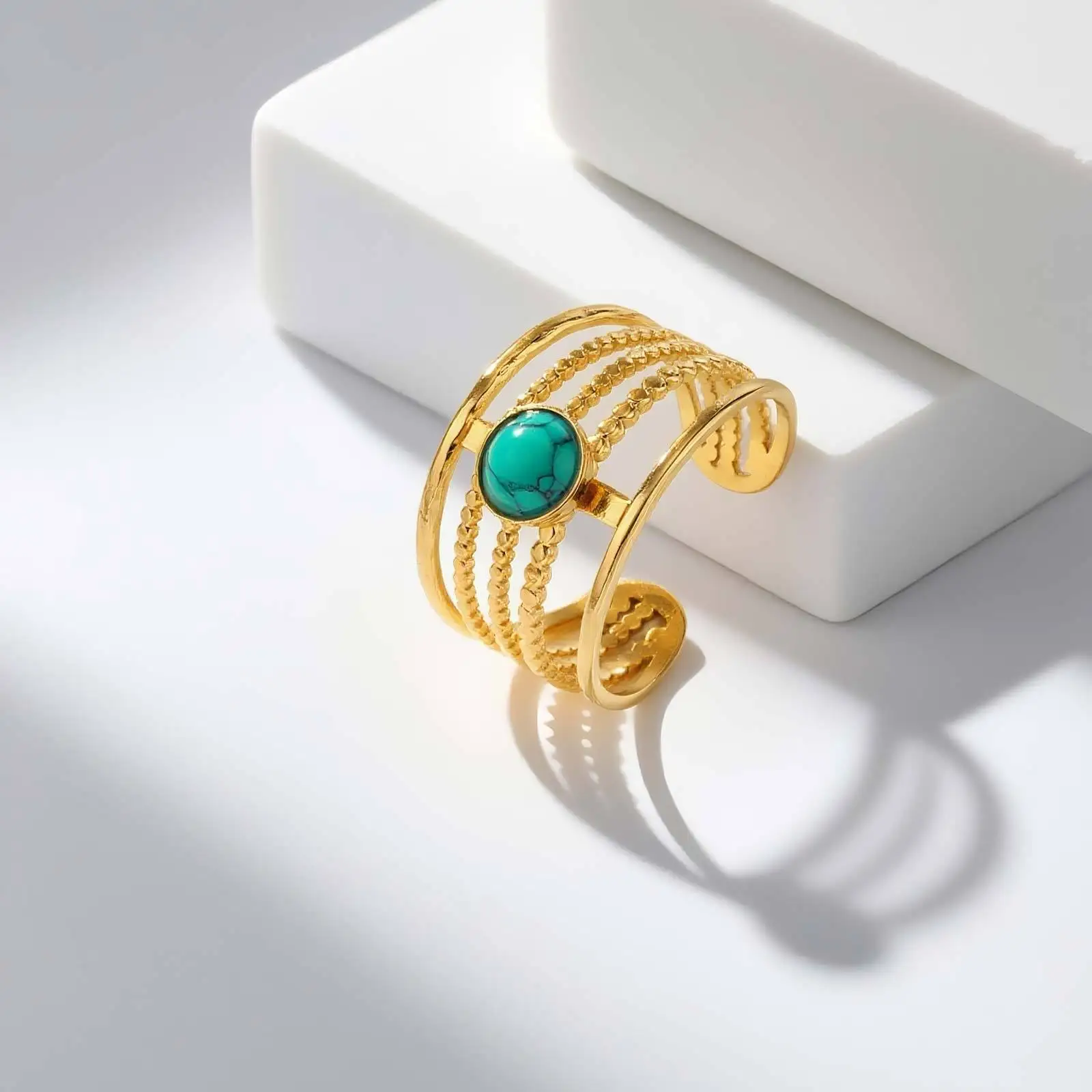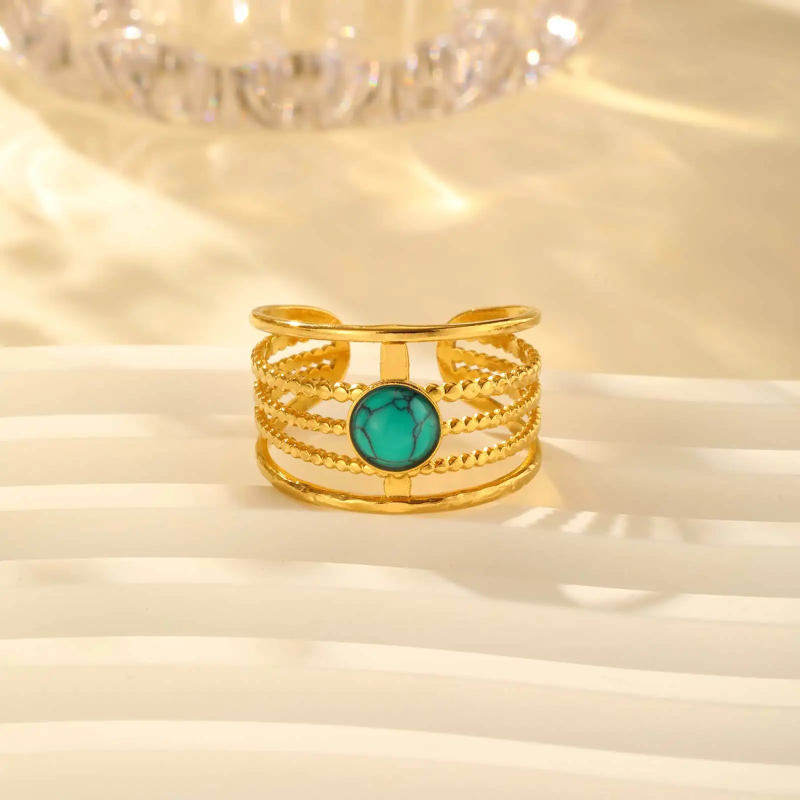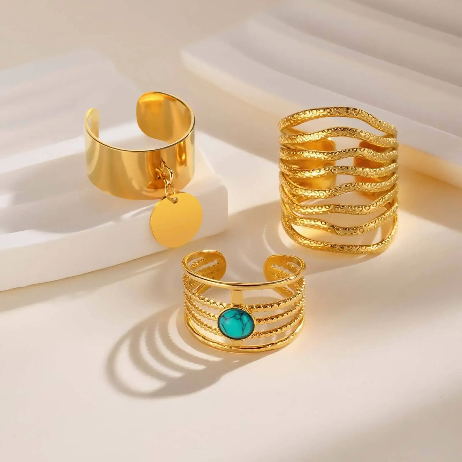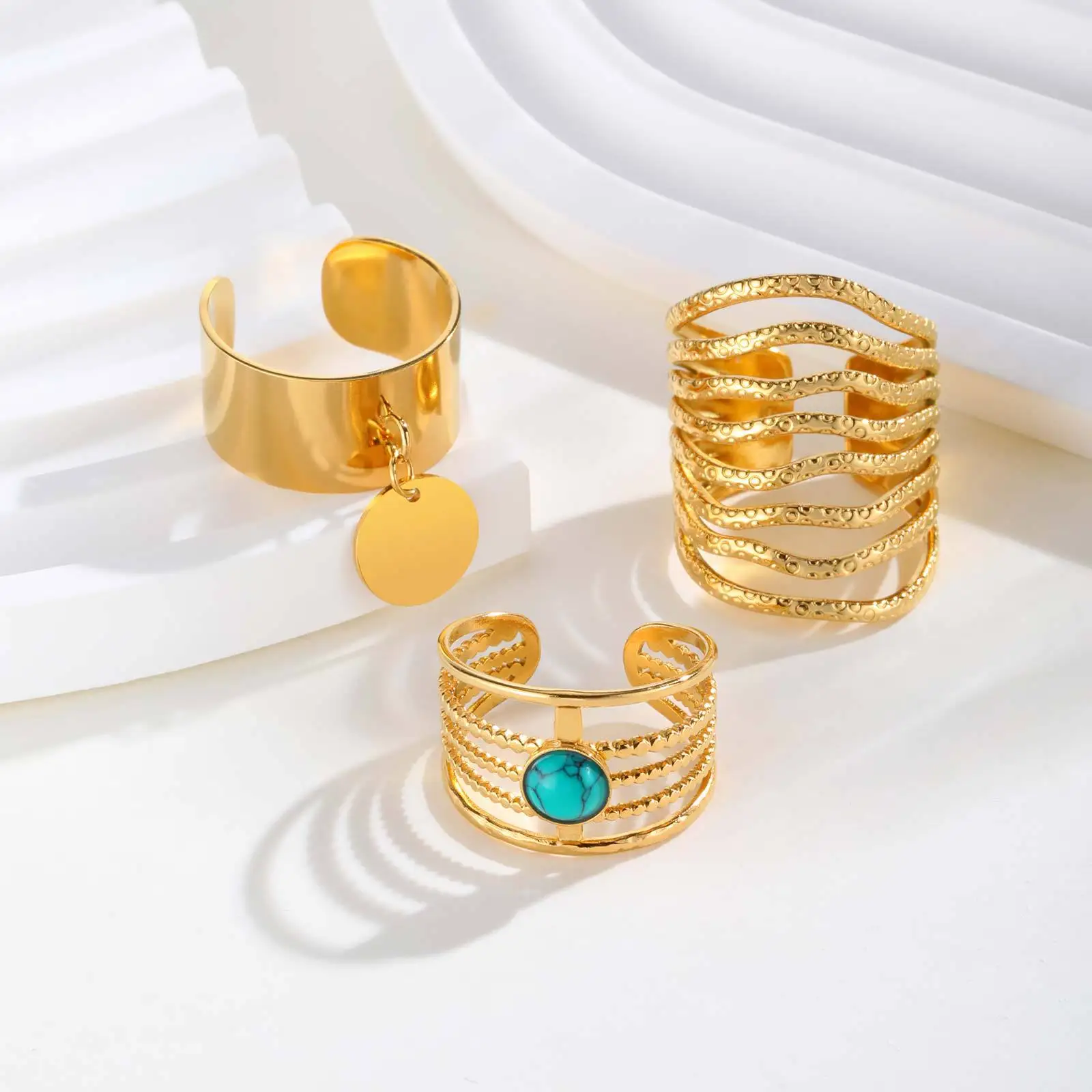 Minimalist Jewelry 18k Gold Plated Open Round Charm Ring Irregular Line Shape Stainless Steel Texture Wave Ring for Women