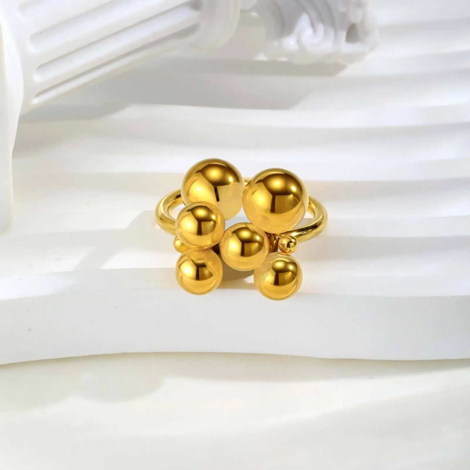 Minimalist Adjustable Multi Small Ball Grape Ring Women Men Stainless Steel Jewelry Ring Hand Accessories