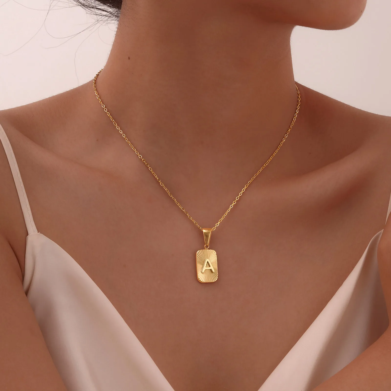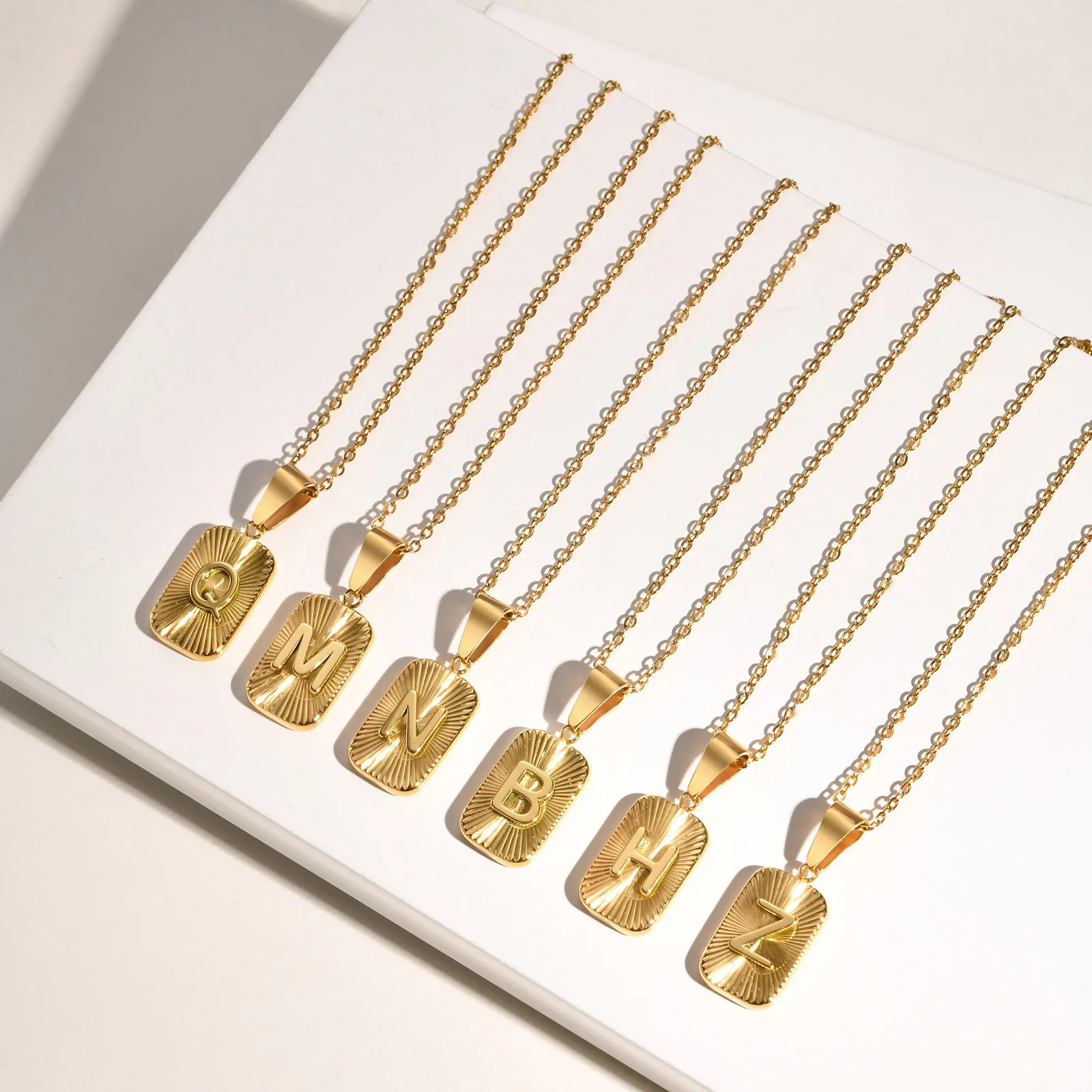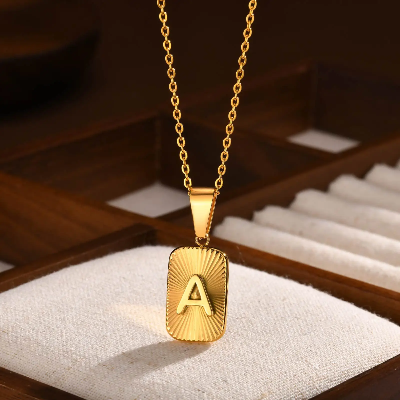 New Trendy Stainless Steel Pendant Necklace Square English A-Z Initial Letters Necklaces for Women