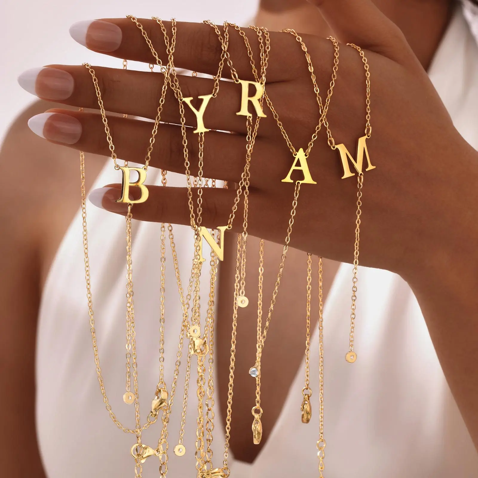 High Quality Gold Plated Stainless Steel A-z Alphabet Pendants Necklace 26 English Letters Pendant Necklace