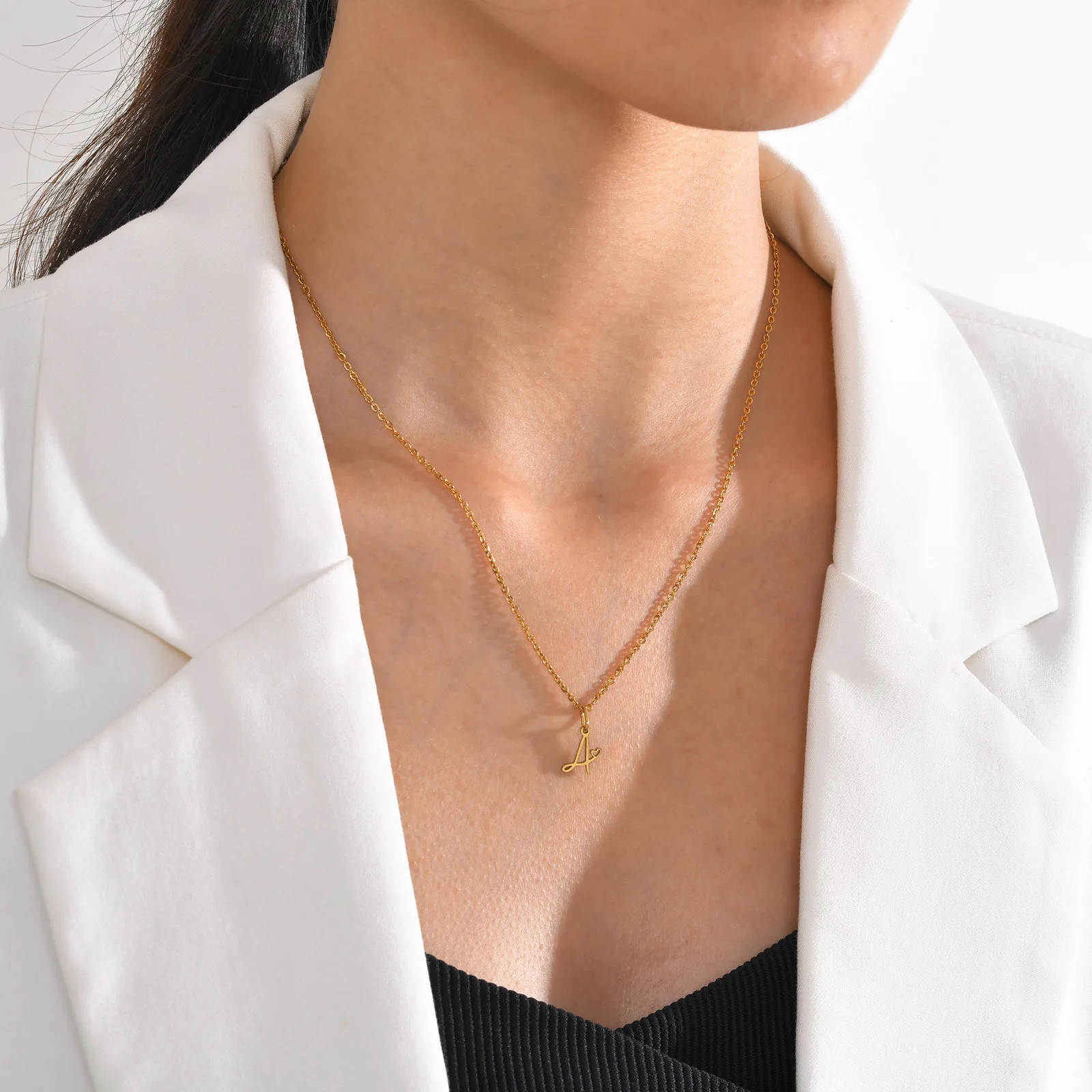 Custom Fashion Waterproof Stainless Steel Necklace 26 English Initial Letter Diy Pendant Necklace for Women