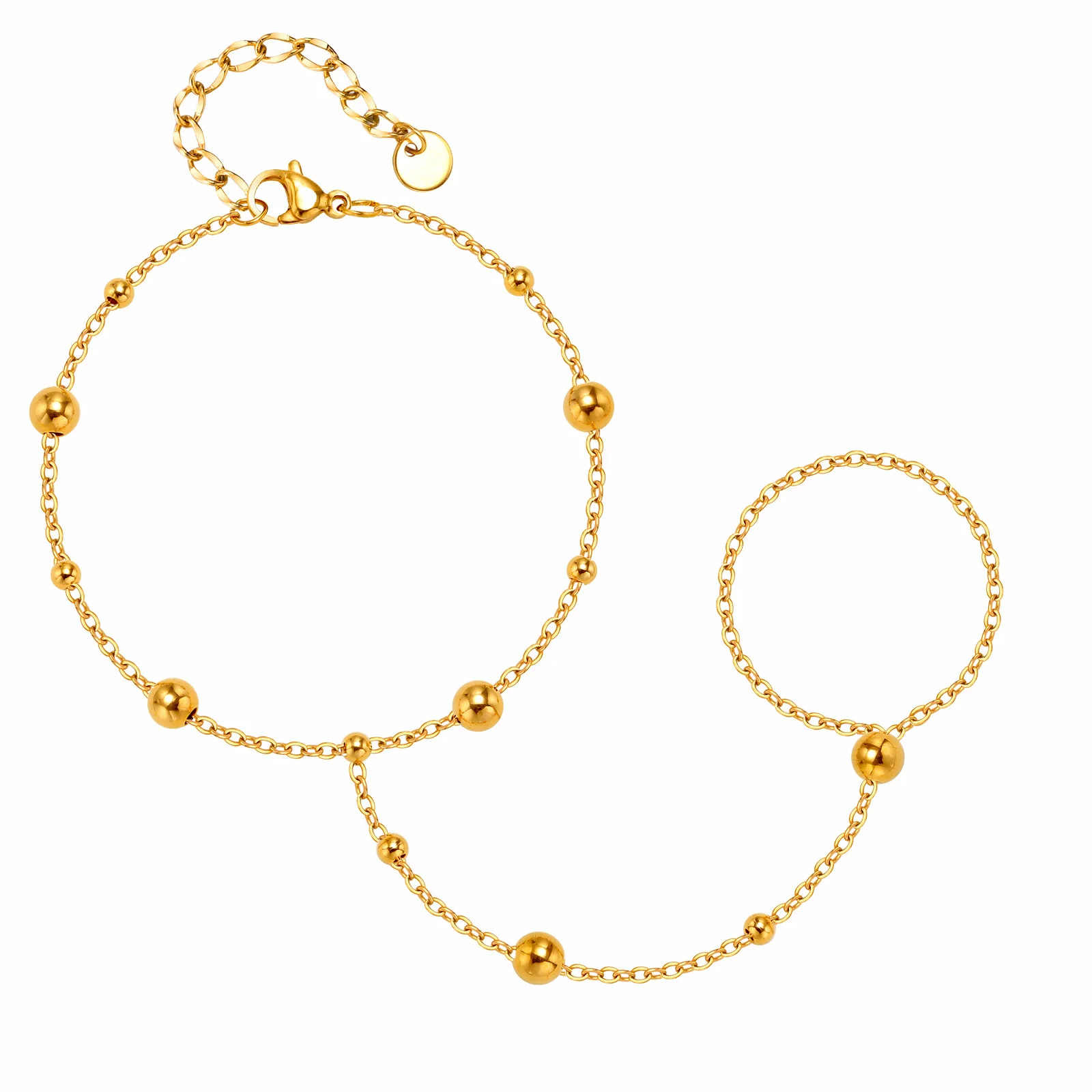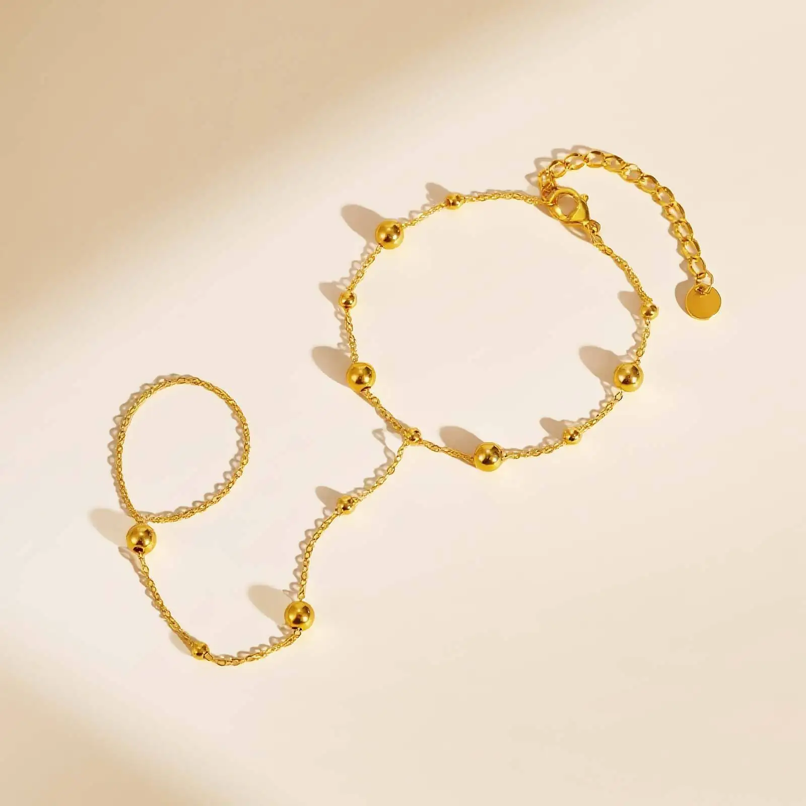 Minimalist Design Gold Plated Stainless Steel Beads Chain Finger Bracelet Finger Bracelet for Girls Women Jewelry