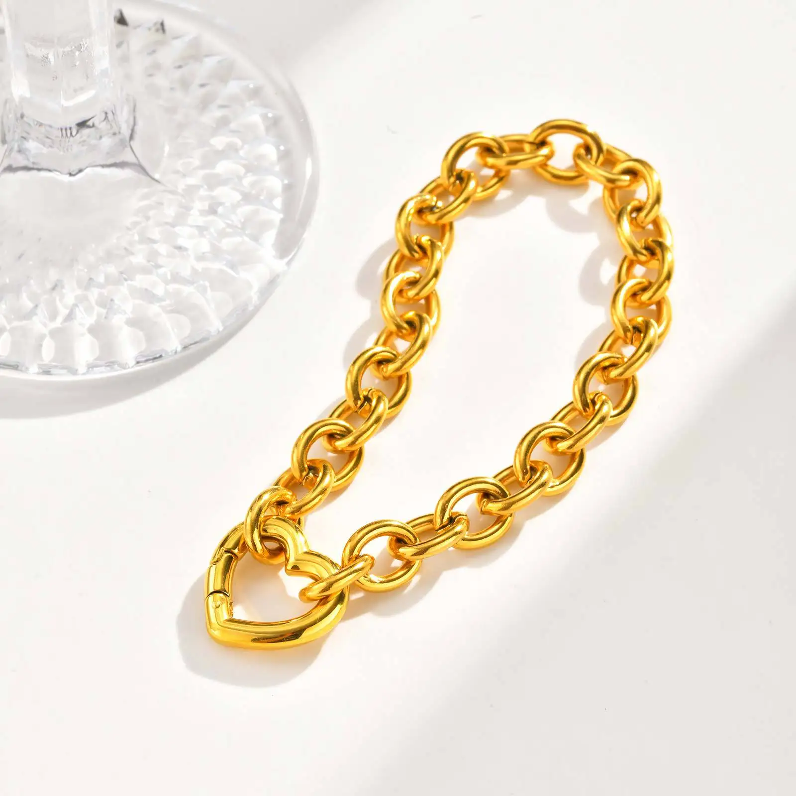 Hot Bracelet Jewelry Women's Gift Bracelet Hollow Heart Clasp Chunky Link Chain Bracelets