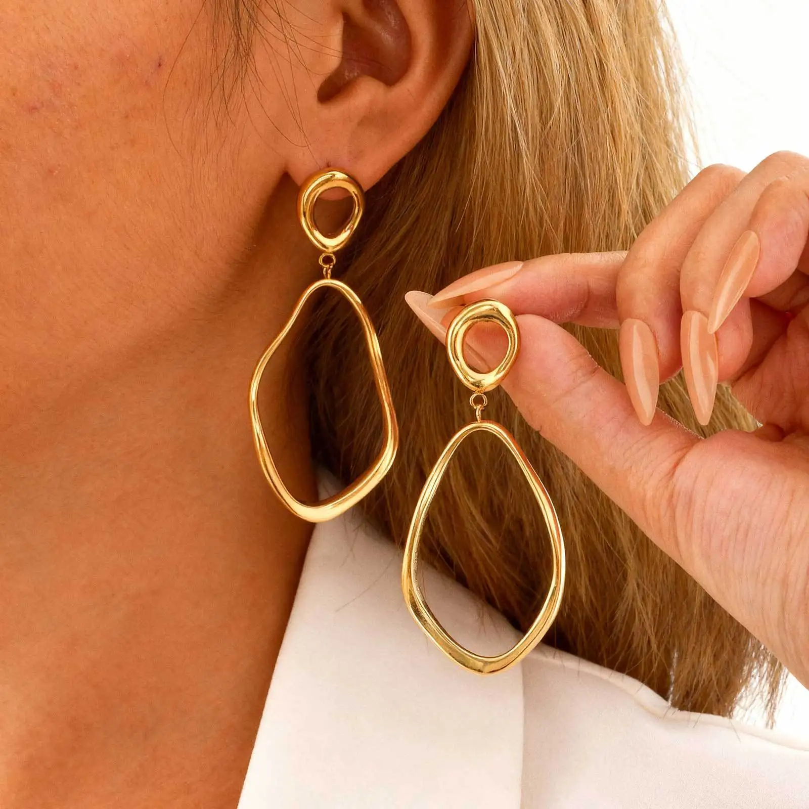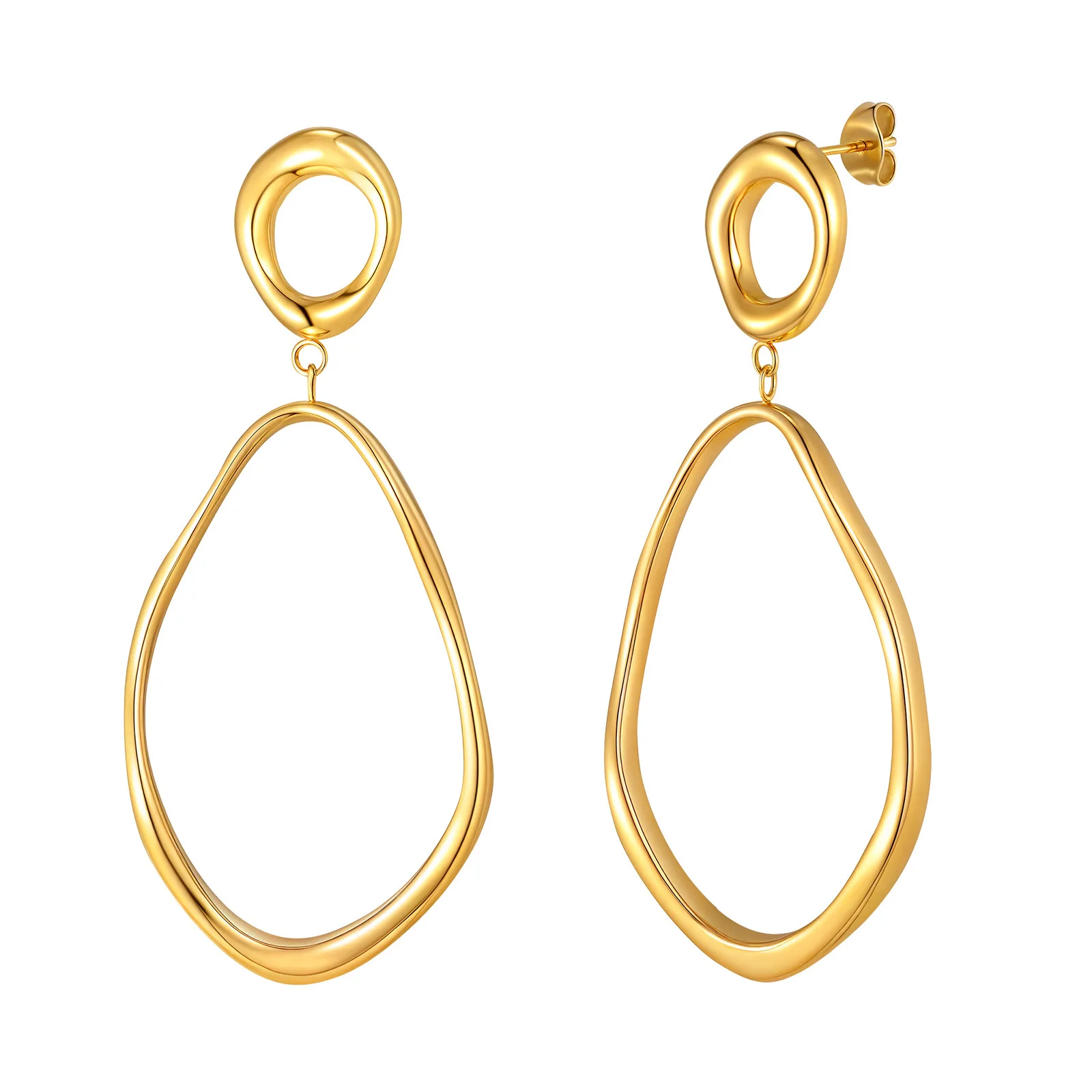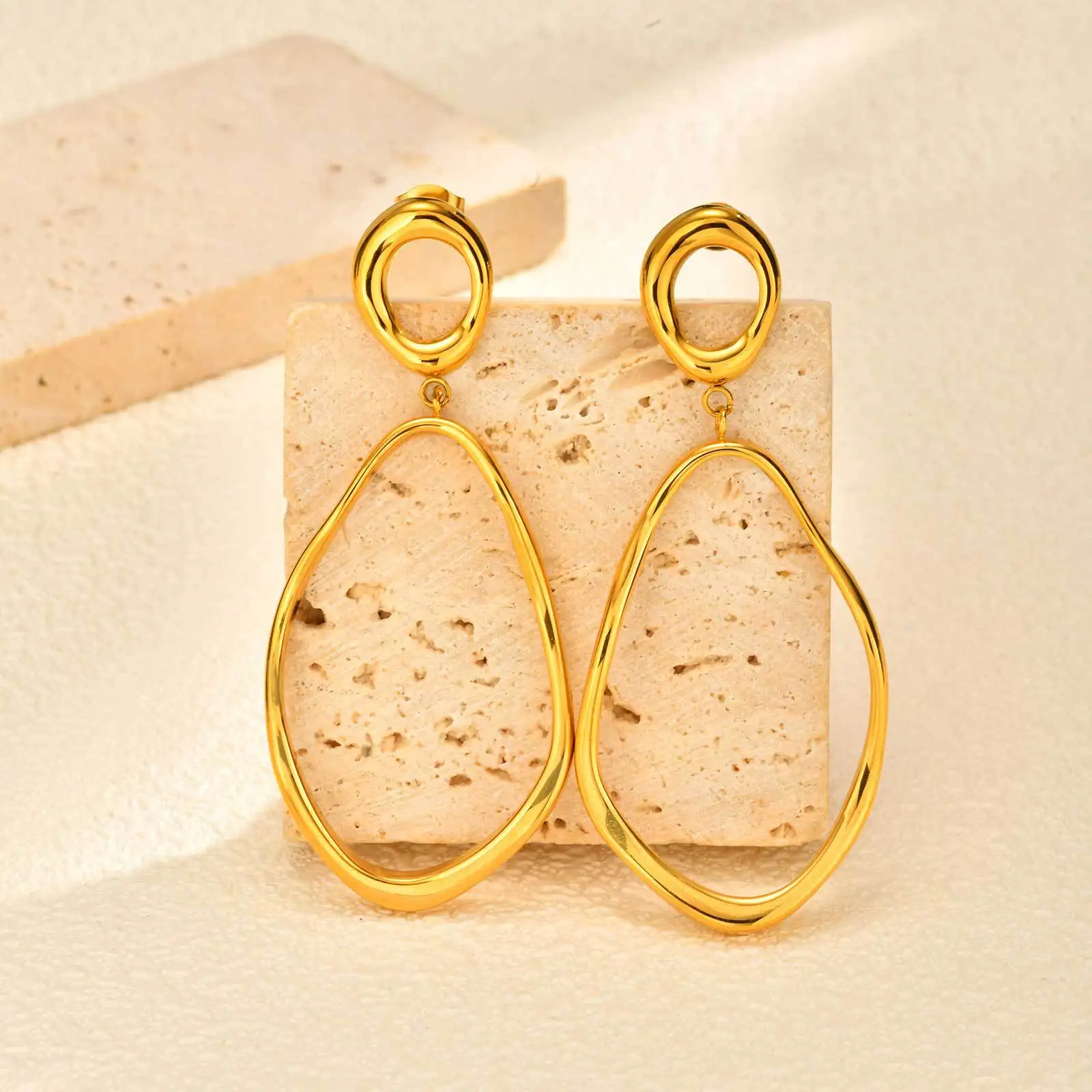 Fashion Geometric Pattern Ear Drop Earrings Stainless Steel Irregular Circle Hoop Pendant Earring