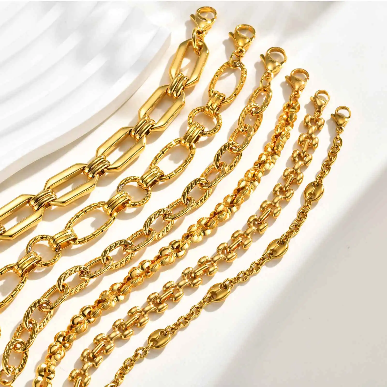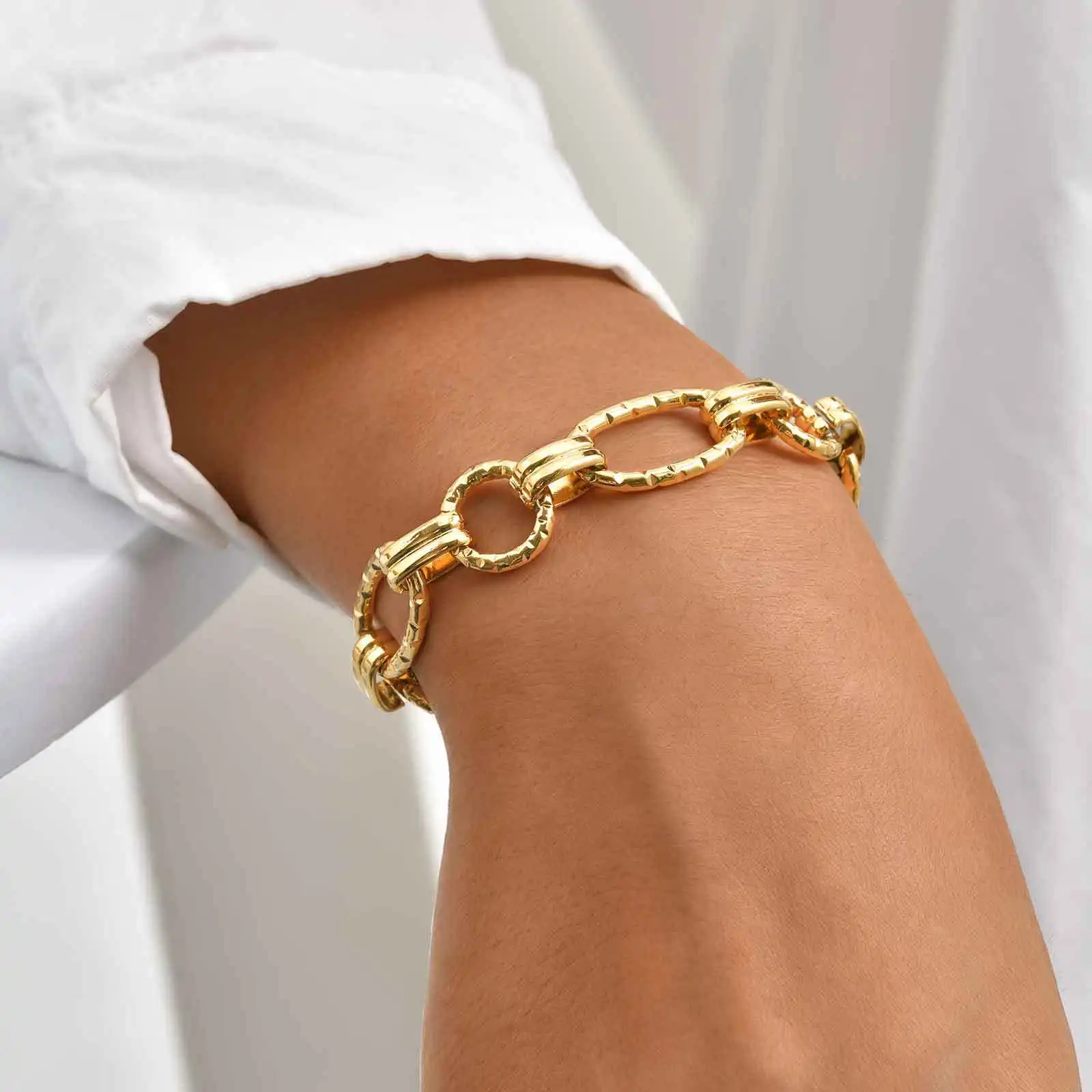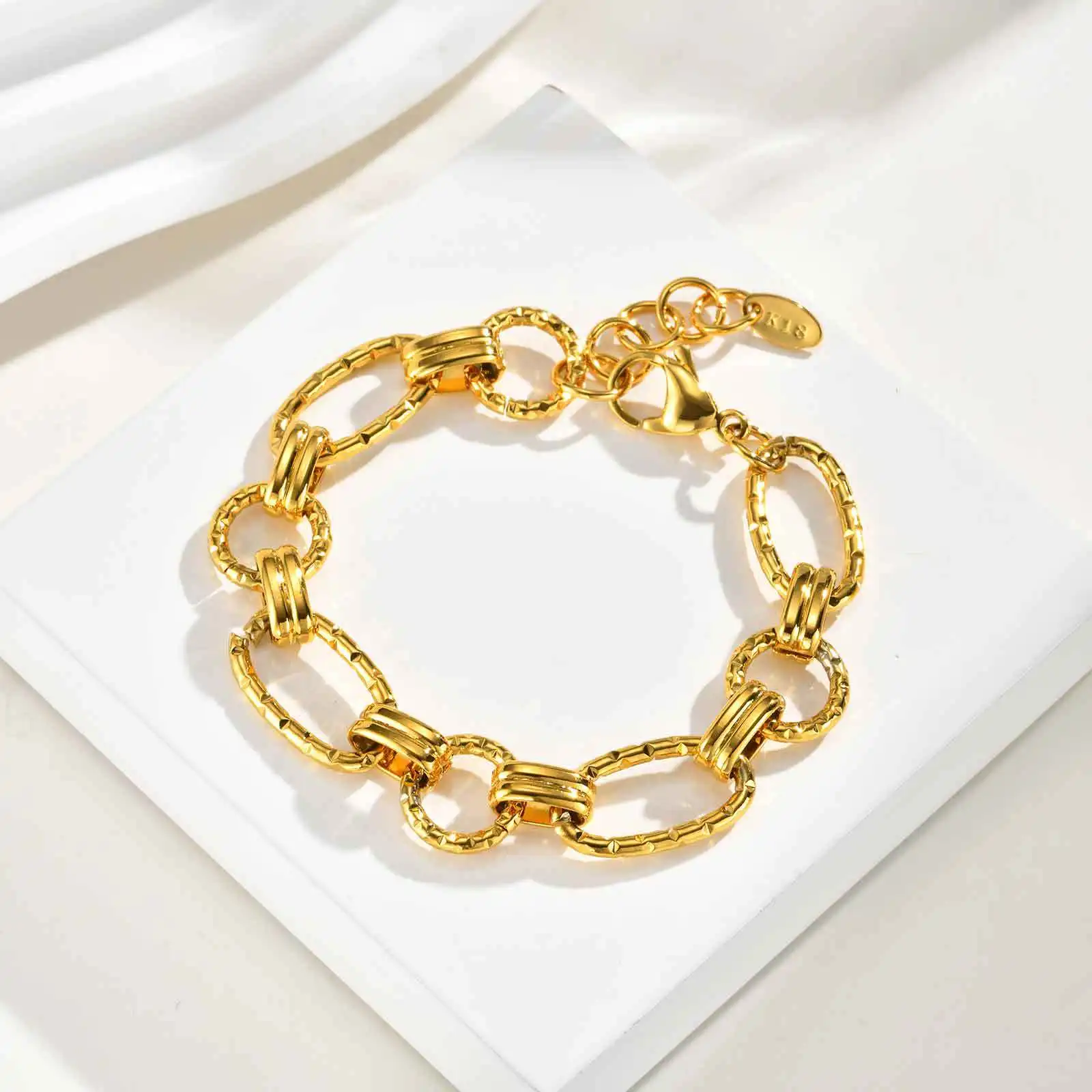 Gold Stainless Steel Flat Cross Chain Bracelet for Women European Style O-Ring Link Minimalist Jewelry Wholesale