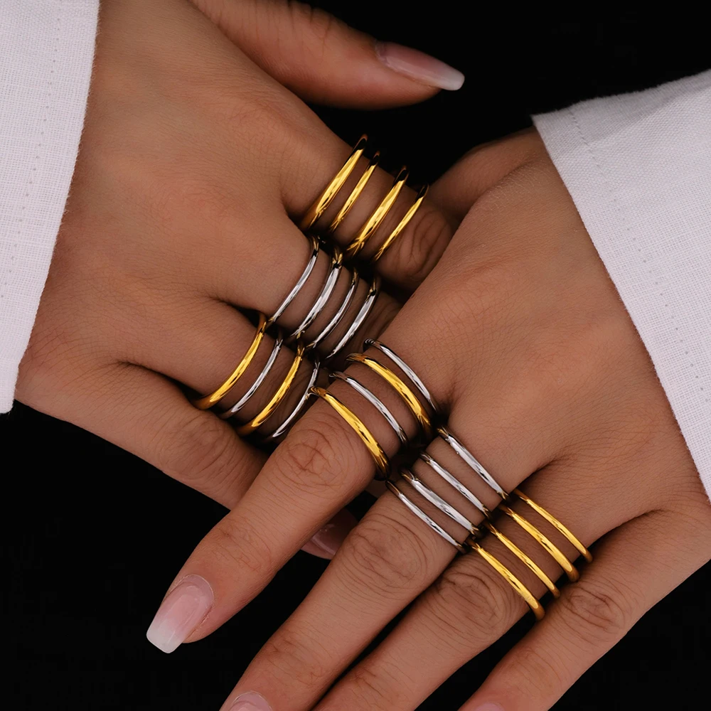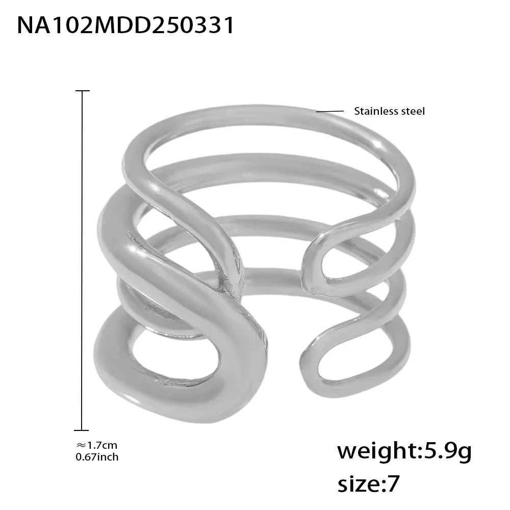 YUKAM 18K Gold Plated Stainless Steel Fashion Finger Ring Two Tones Multi Layer Crossing Cuff Open Twist Winding Rings for Women