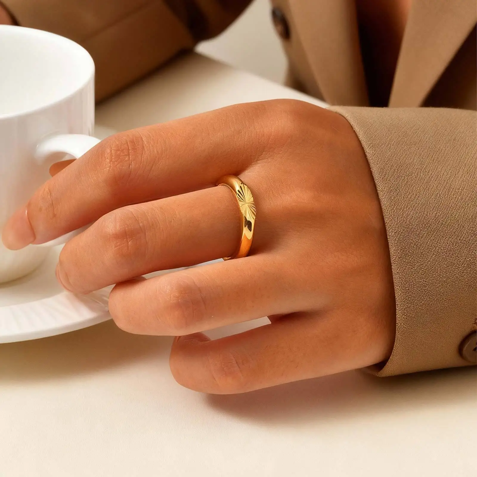 Elegant Engineered Oval Ring Stainless Steel 18K Gold Plated Women Jewelry Luxury Minimalist Gift Wholesale