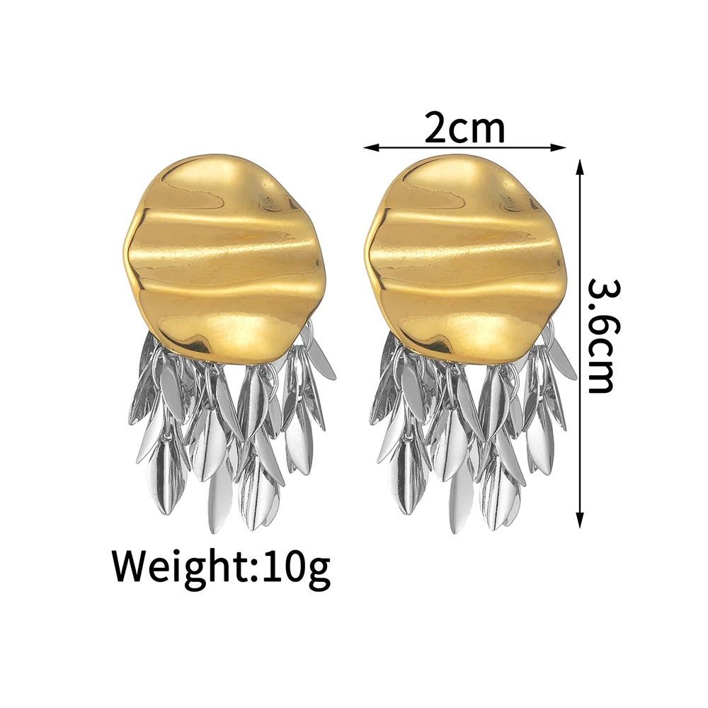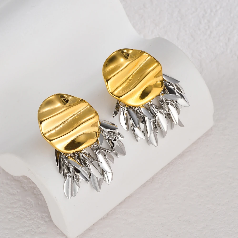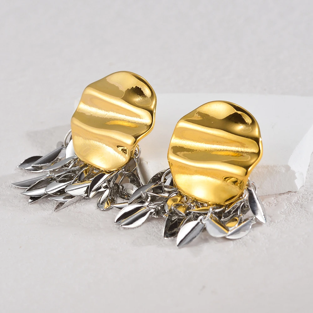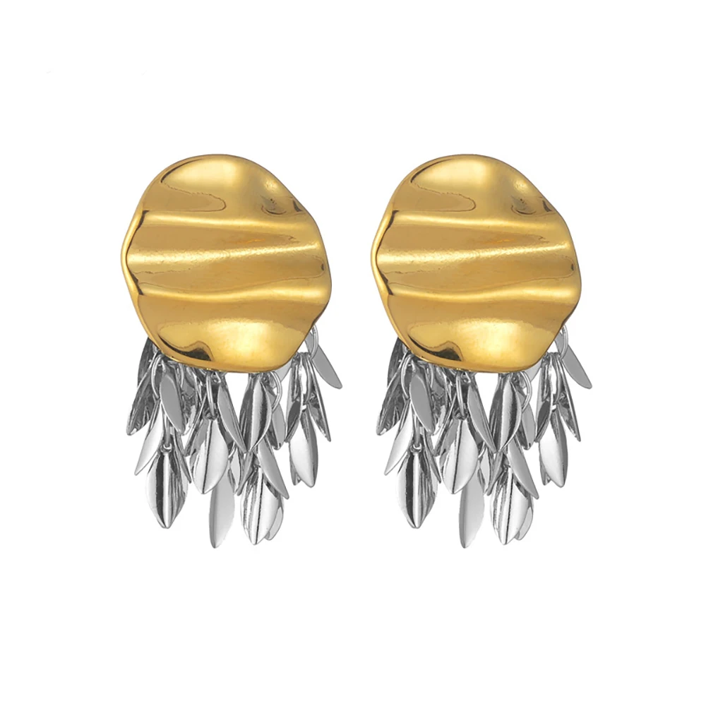 YUKAM Stainless Steel 18K Gold Plated Irregular Tassel Earring Exaggerated Two Tones Uneven Texture Fold Fashion Dangle Earrings