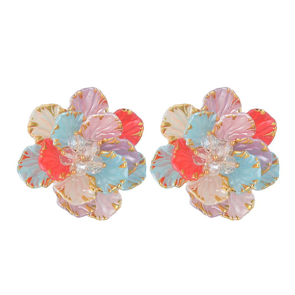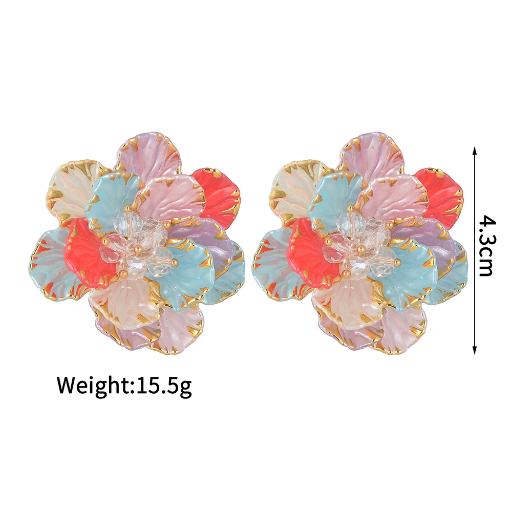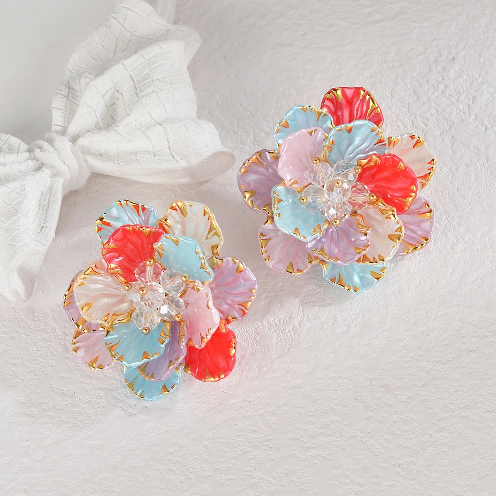 YUKAM Jewelry Stainless Steel Retro Irregular Geometric Earrings Acrylic Exaggerated Colored Resin Crystal Beads Flower Earrings