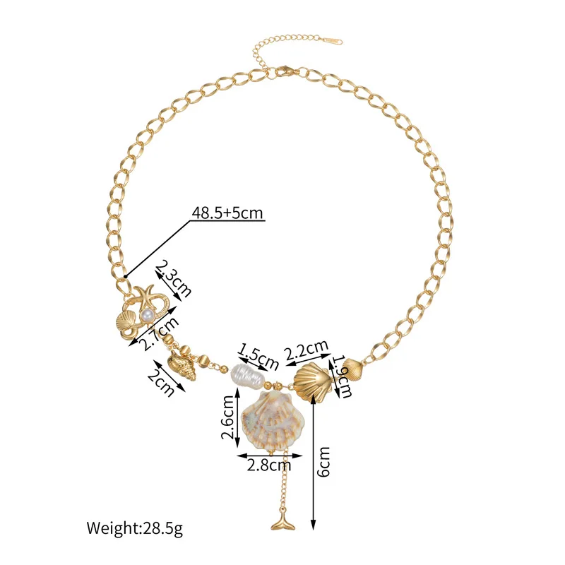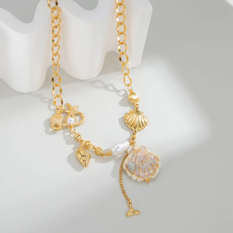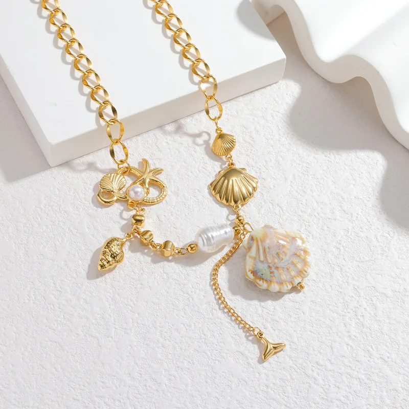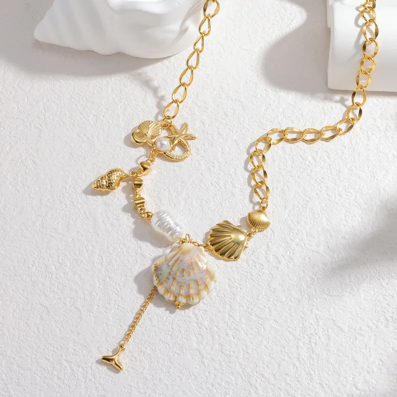 Ocean Series Necklace for Women Stainless Steel 18k Gold Plated Shell Pendant Boho Beach Jewelry Bulk