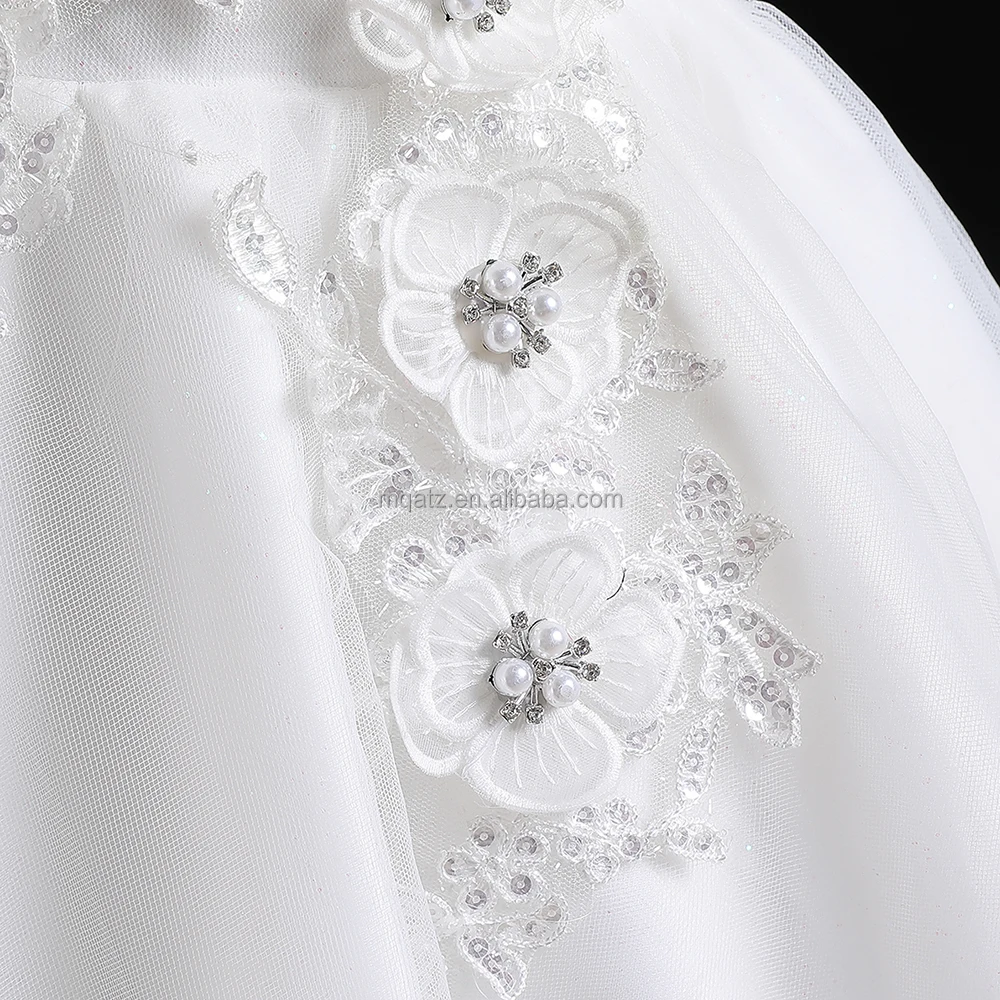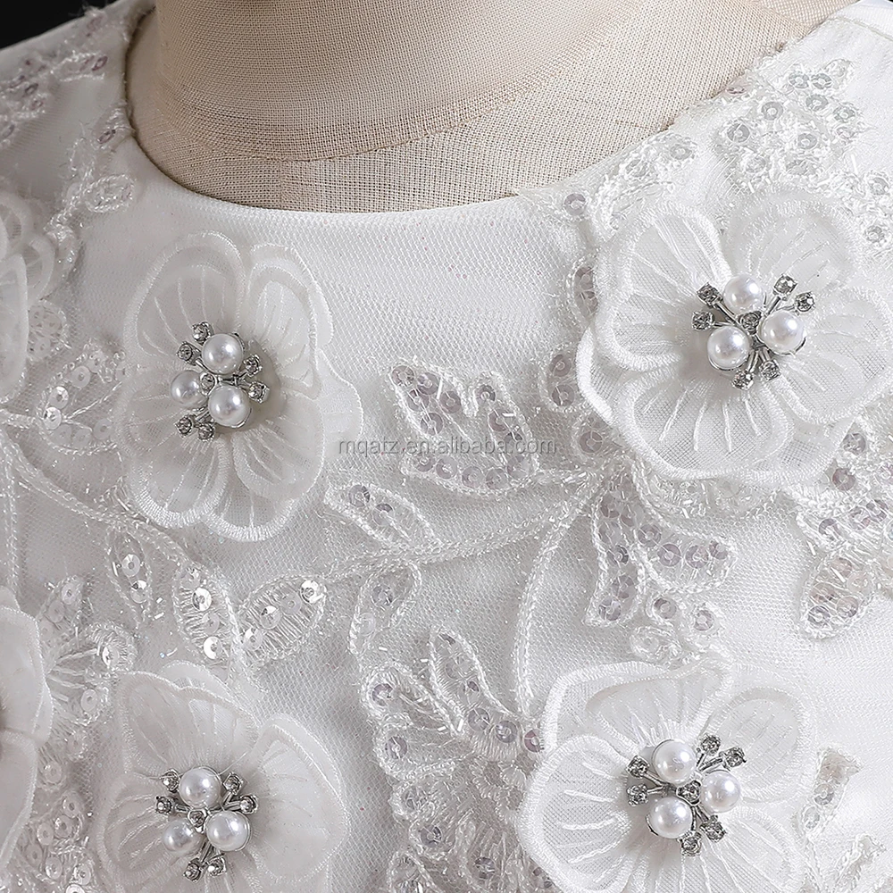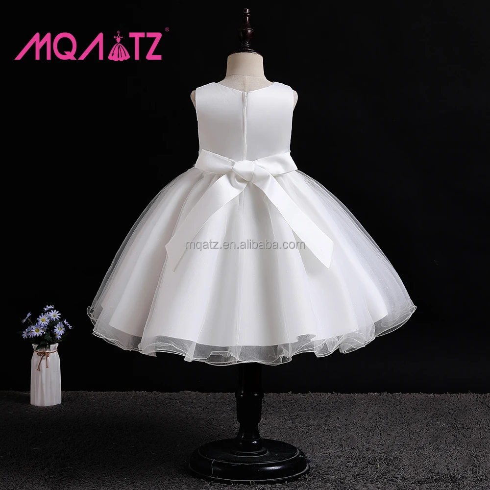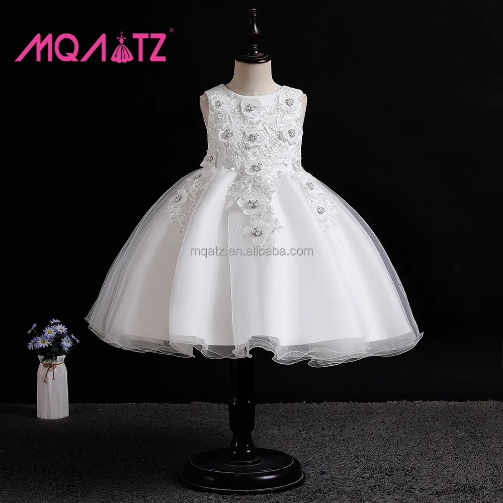 MQATZ Latest Good Quality White Flower Sleeveless Kids Dress Beading Evening Girls Dresses Christening Gown