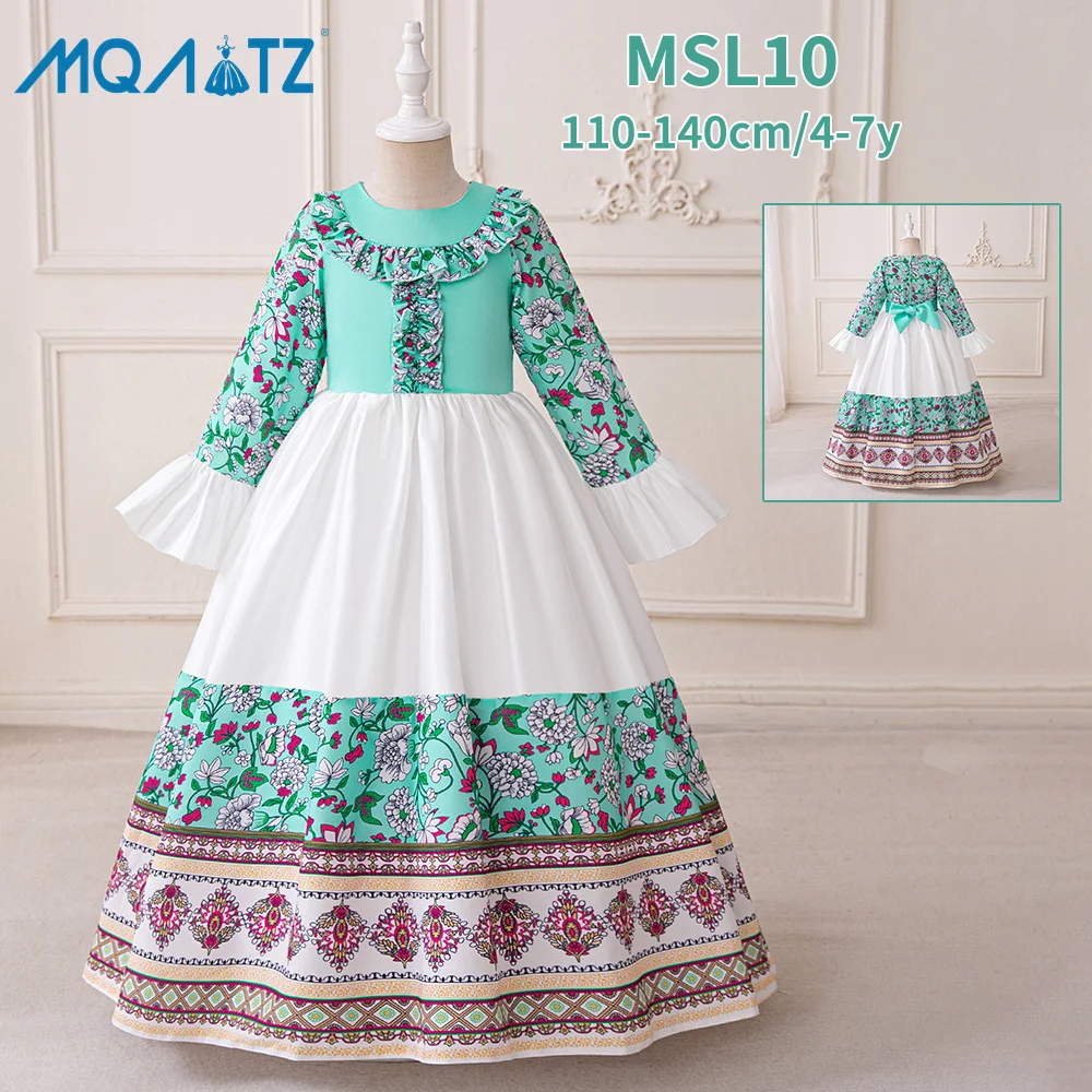 MQATZ Kids Formal Party Dress Breathable Muslin Western Muslim Wholesale Floral Printed for Age 4-7 Years Girls' Style