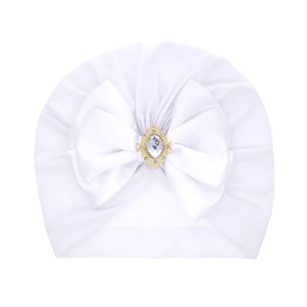 Hot Selling Solid Baby Beanie Big Bowknot Diamond Style Newborn Kids' Hat for Outdoor Use